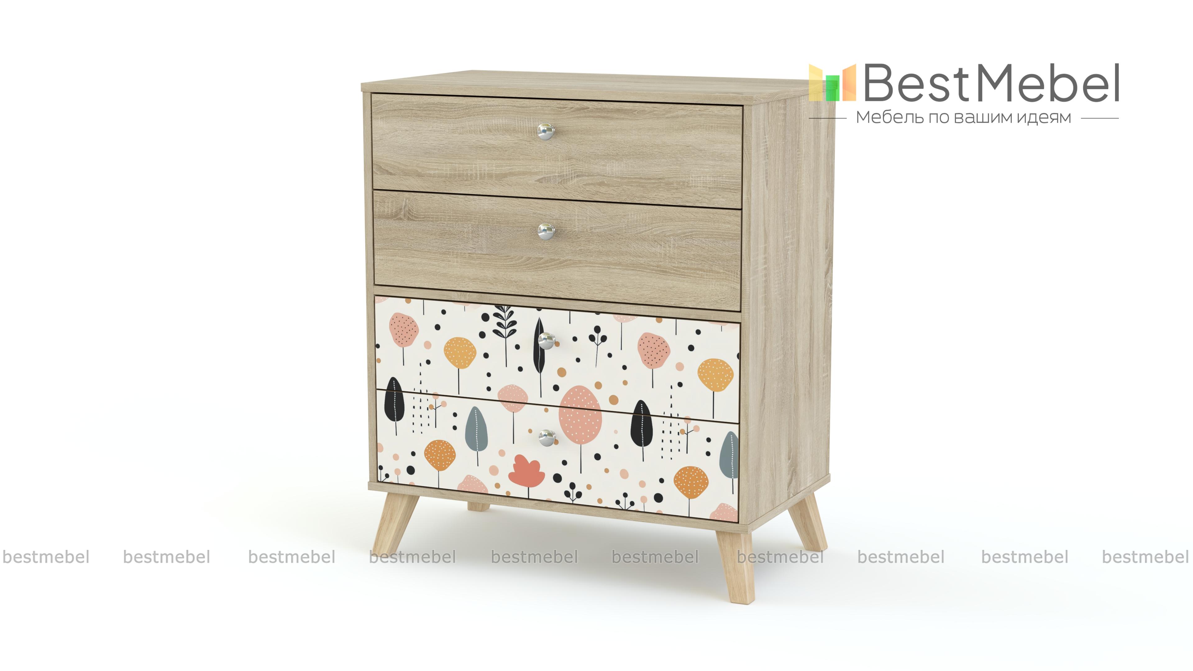 Комод Эльза 1 BMS подходит не только для хранения белья и одежды, но и игрушек, материалов для творчества и учебы. Модель на деревянных сканди-ножках имеет классическую конструкцию с четырьмя выдвижными ящиками и компактные размеры, оптимальные для детской. Нижние фасады комода выделены стильным пастельным рисунком, стойким и не выгорающим на солнце. Купить комод Эльза 1 BMS с выбором нужных размеров, цвета и фурнитуры вы сможете недорого в нашем интернет-магазине.