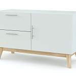 Комод ID-9355 BMS отличают особенно широкая столешница, визуальная легкость и универсальность дизайна. Современная модель органично впишется в минималистичные интерьеры благодаря белоснежным корпусу и фасадам в сочетании с высокими скошенными ножками древесных тонов. Для удобства хранения домашних мелочей комод оборудован двумя выдвижными ящиками и распашным отделением с ручками-рейлингами. Купить комод ID-9355 BMS, практичный и стильный, вы сможете по демократичной цене в нашем интернет-магазине.