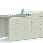 Комод Маринер 3 BMS в сложенном виде может использоваться для хранения большого количества вещей, а при необходимости превратится в гладильную доску. Крупногабаритная конструкция оборудована четырьмя малыми и шестью большими выдвижными ящиками, откидной столешницей, которая превращается в отсек для хранения гладильных принадлежностей, и складной секцией на выкатной опоре. Выполненный в натуральном крафтовом оттенке, комод эффектно смотрится в современном интерьере. Купить комод Маринер 3 BMS с учетом нужных размеров приглашаем в наш интернет-магазин.