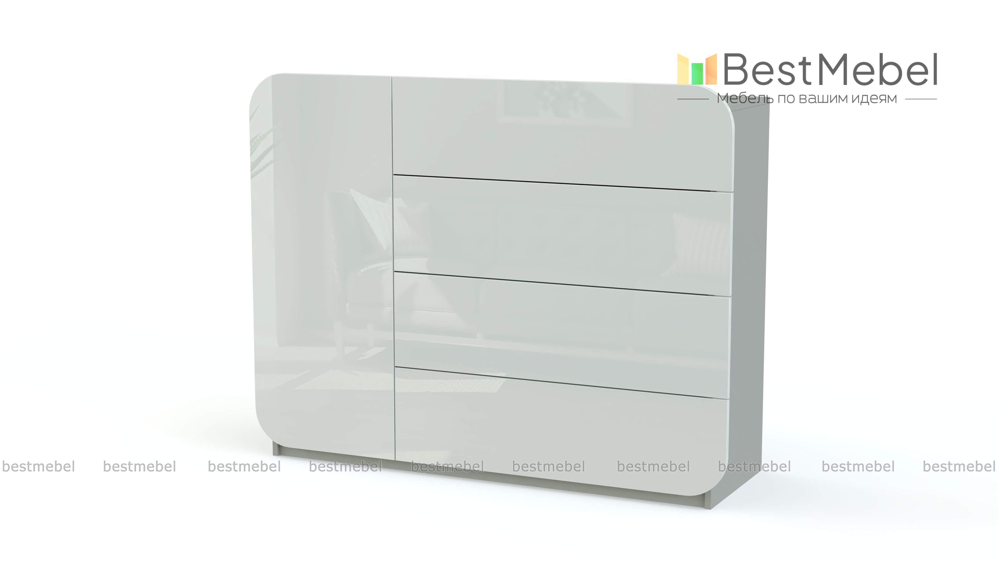 Нестандартный дизайн и насыщенная расцветка – это модель для смелых идей в интерьере и современных решений. Четыре выдвижных отделения и одно распашное имеют матовые фасады без ручек, скругленные по краям. Компактный и вместительный, комод МБ 32.1 BMS позволит разместить все необходимые в гостиной, спальне или прихожей мелочи. Столешница подойдет для ТВ или выгодно представит предметы декора. Приобрести модель по доступной цене приглашаем в наш интернет-магазин.
