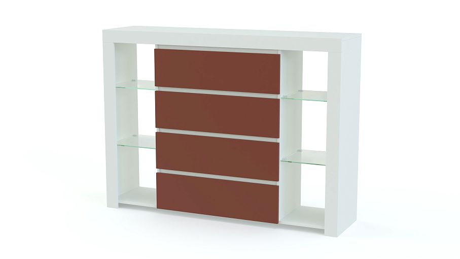 Роскошная модель обладает всеми достоинствами современной мебели. Комод Милан 4-SZ BMS максимально лаконичен по форме, эргономичен и выполнен из материалов высокого качества. Выдвижные ящики без ручек с матовыми фасадами соседствуют с открытыми стеклянными полками. Редкая вместительность, стильный вид и доступная цена обеспечивают комоду неизменную популярность у поклонников минимализма.