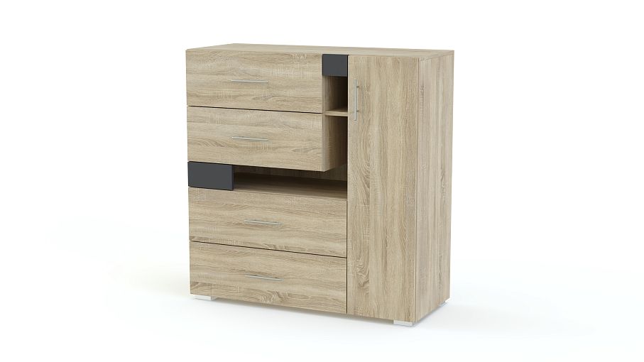 Комод Next NX11 BMS благодаря оригинальному дизайну станет гармоничным дополнением современного интерьера и отлично впишется в молодежные комнаты. Компактная, но вместительная, модель порадует владельцев разными типами отделений – выдвижными ящиками разных размеров, распашным отделением и нишами. Ярким акцентом в домашнем интерьере станут асимметрично расположенные элементы и контрастные вставки. Купить комод Next NX11 BMS и организовать удобное хранение бытовых мелочей вам поможет наш интернет-магазин.