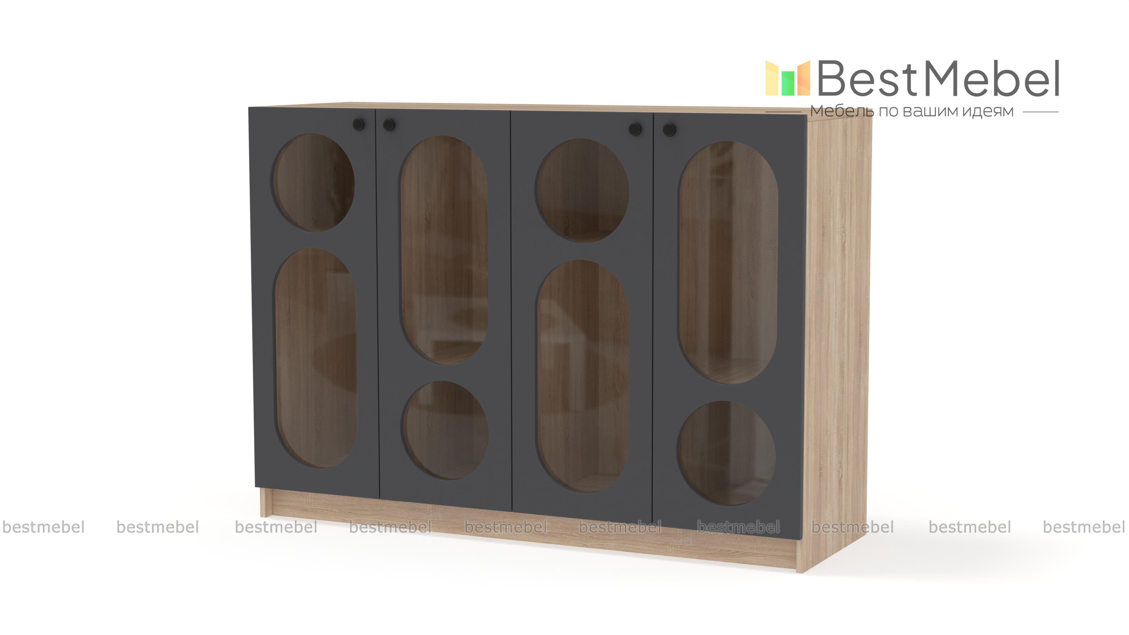 Комод Руди 3 BMS отлично вписывается в гостиные, молодежные комнаты и общественные пространства. Четыре распашные дверцы со стеклом выполнены из МДФ актуального оттенка и имеют округлые геометрические вырезы. Книги, посуда, органайзеры с мелочами и предметы декора будут выглядеть стильно на полках за фигурными стеклами витрины. Купить комод Руди 3 BMS вы всегда сможете на сайте нашего интернет-магазина, подобрав необходимые размеры и оттенки по каталогу.
