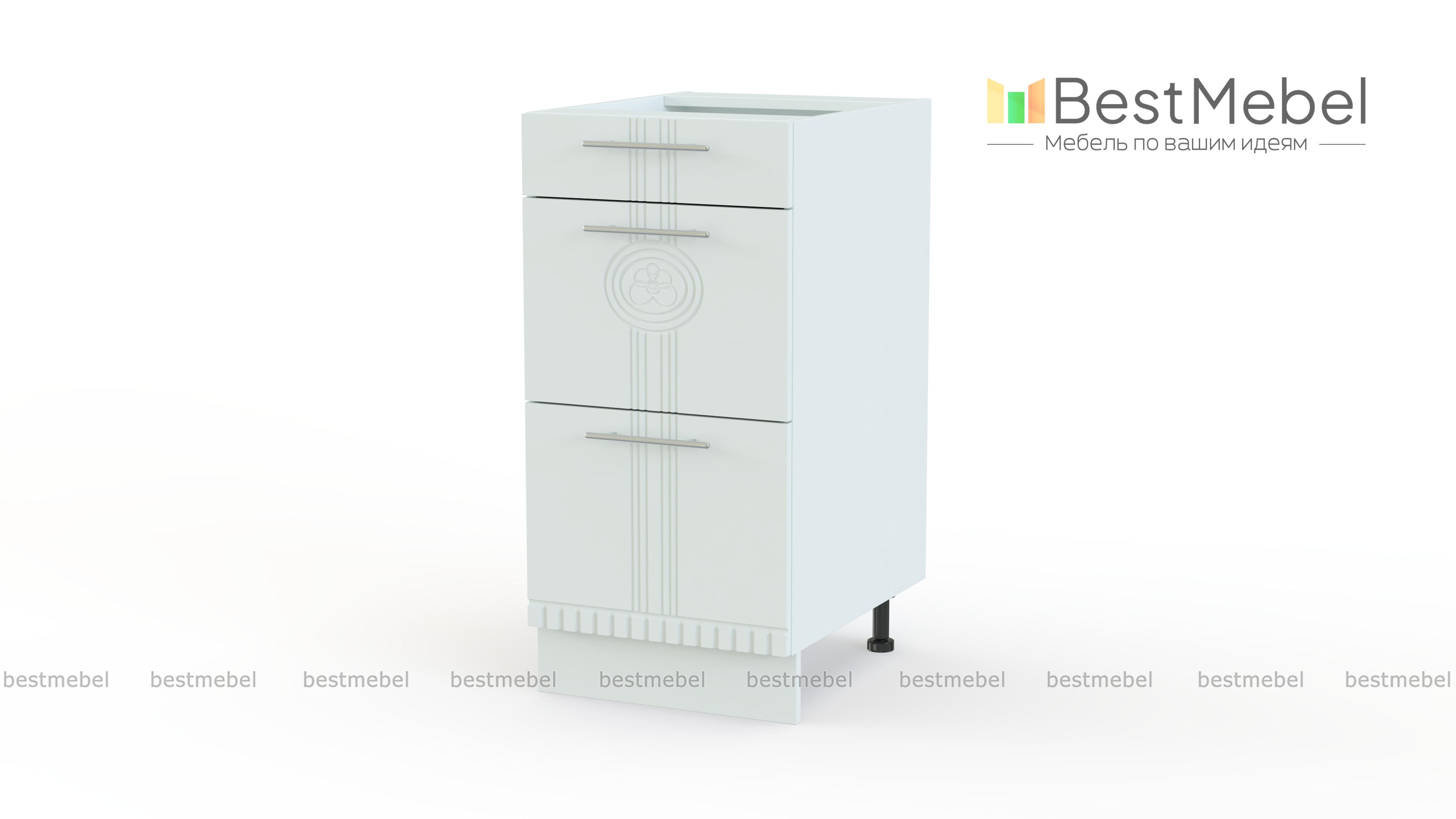 Кухонная тумба с 3 ящиками Паллада BMS отличается компактными габаритами и высокой функциональностью. Тумба гармонично впишется в нижний ряд модульного комплекта для кухни и будет незаменима для хранения мелочей и более крупных предметов. Модель оборудована тремя выдвижными ящиками разной высоты, оснащенных плавной системой открывания. Фасады яркого оттенка декорированы фрезерованным рисунком и оригинальными ручками. Купить кухонную тумбу с 3 ящиками Паллада BMS приглашаем в наш интернет-магазин.