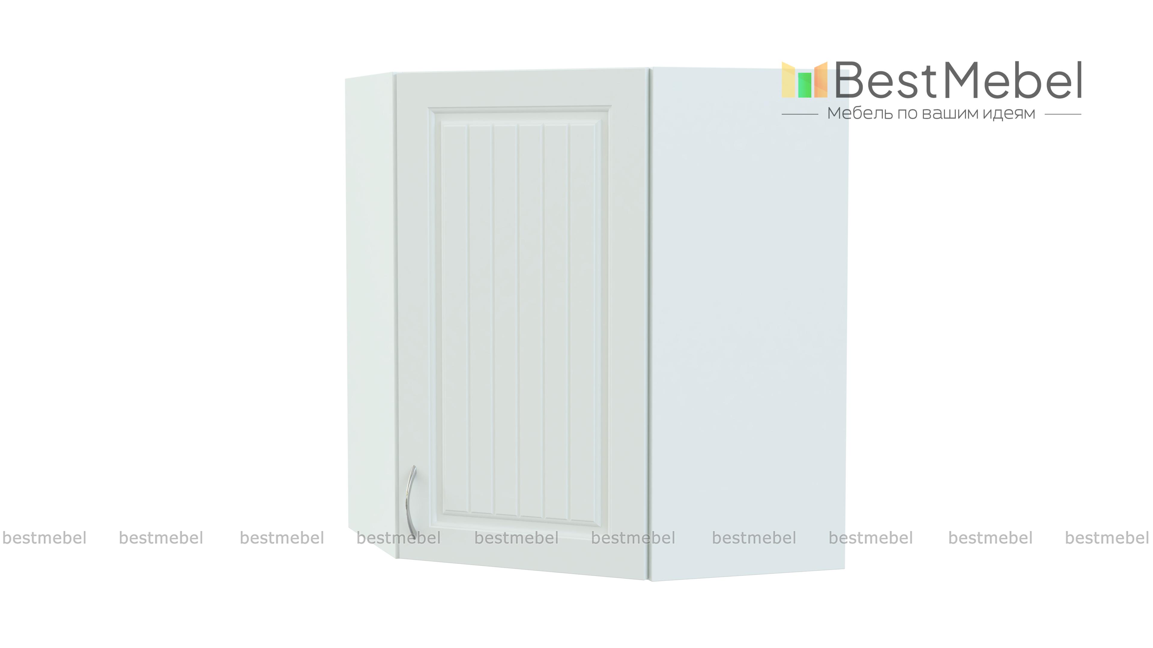 Шкаф навесной угловой Николь BMS выполнен в форме трапеции и отличается вместительностью и функциональностью. Модель выгодно использует угловое пространство кухни и предназначена для стыковки боковых модулей верхнего ряда. За распашной дверцей находится внутреннее отделение с полкой для хранения продуктов и кухонных аксессуаров. Фасады светлых тонов с фрезеровкой и ручкой под серебро станут частью элегантного комплекта в стиле кантри. Купить шкаф навесной угловой Николь BMS вы сможете по лучшей цене в нашем интернет-магазине.