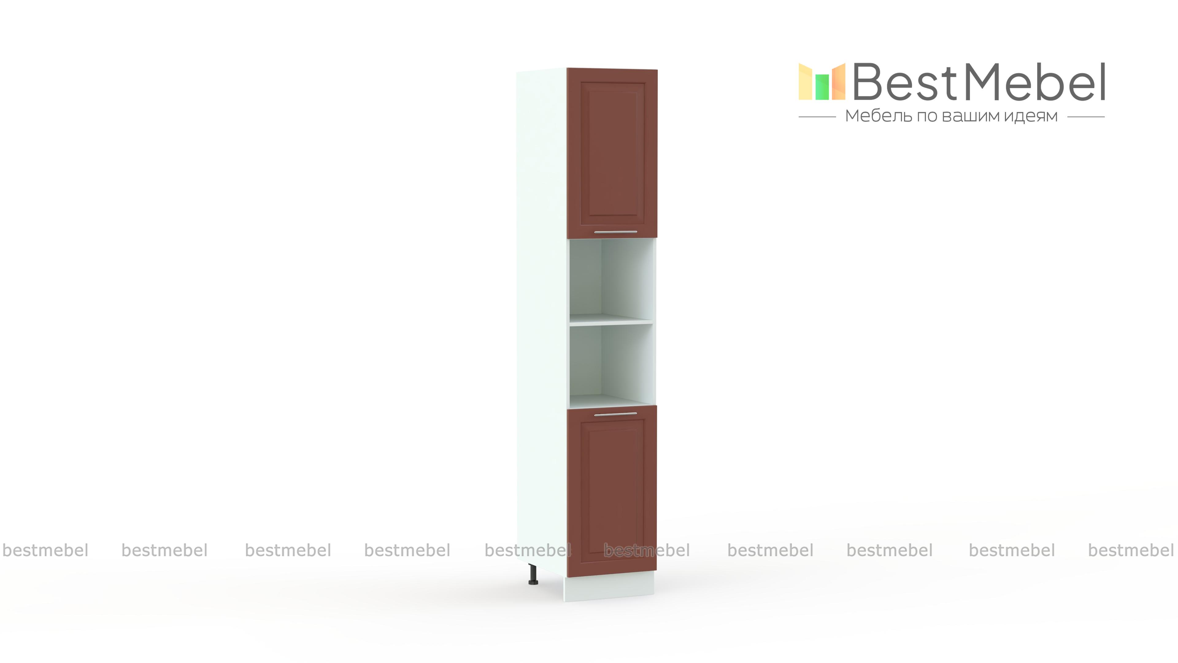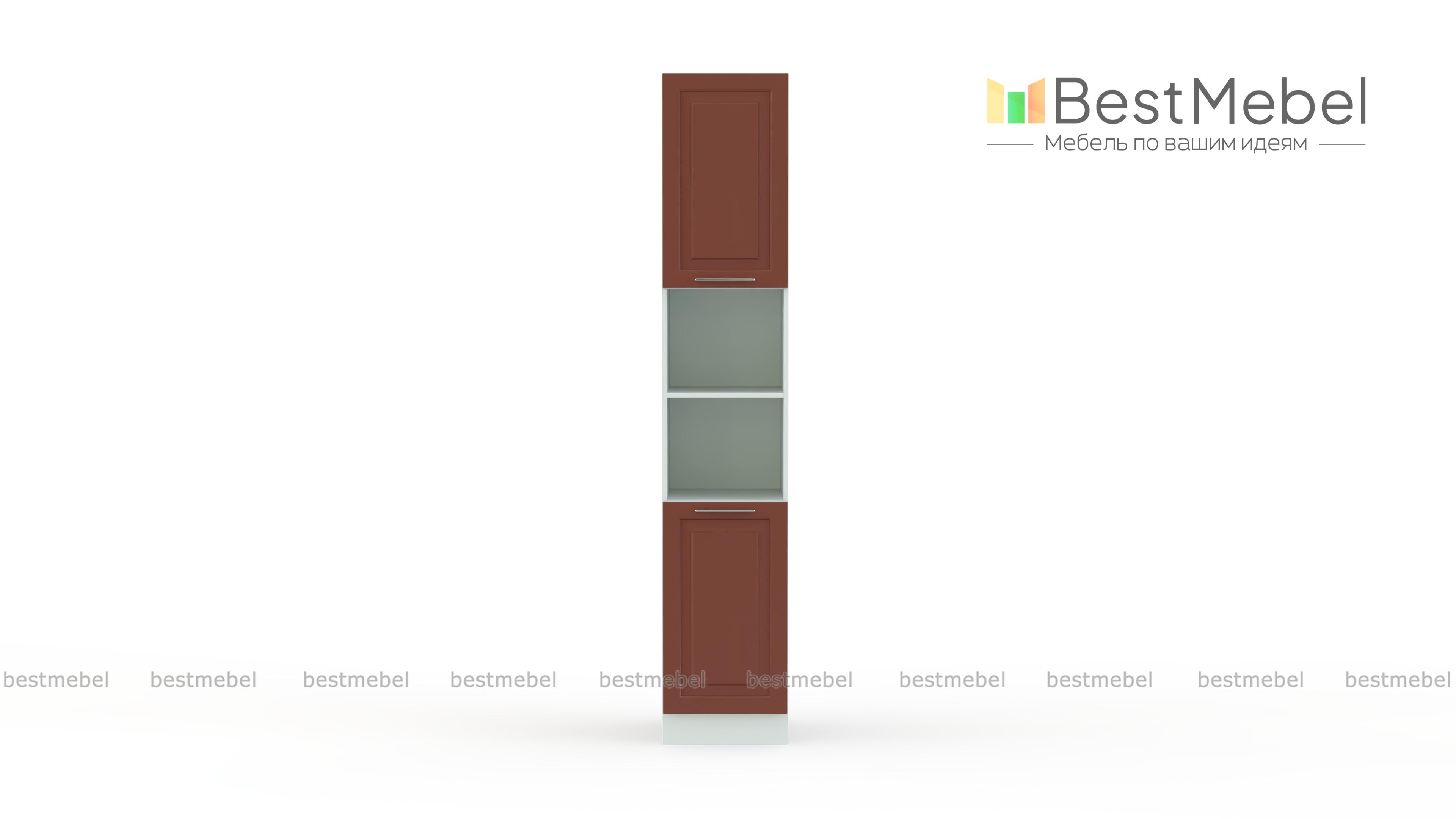Шкаф-пенал двухдверный с открытыми полками Ирен BMS выполнен в классическом стиле и отличается комбинированной конструкцией. Модель оборудована распашными отделениями в верхней части и основании, а в центре располагаются открытые полки. Разноплановые секции помогут компактно разместить как продукты и посуду, так и бытовую технику или предметы декора. Рамочные фасады шкафа выполнены в теплых терракотовых тонах, просты в уходе и износостойки. Купить шкаф-пенал двухдверный с открытыми полками Ирен BMS и сделать кухонный интерьер функциональнее вам поможет наш интернет-магазин.