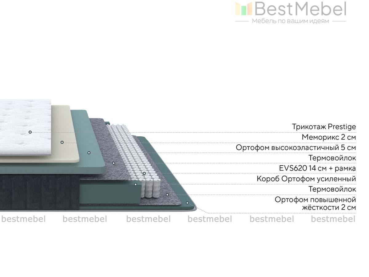 Состав: Меморикс 2см (Ортофом (ППУ) с эффектом памяти) \ Ортофом (ППУ) высокоэластичный 5 см \ Термовойлок \ EVS620 14см \ рамка к ПБ \ Термовойлок \ Ортофом (ППУ) повышенной жесткости 2см \ Короб усиленный(ВППУ).