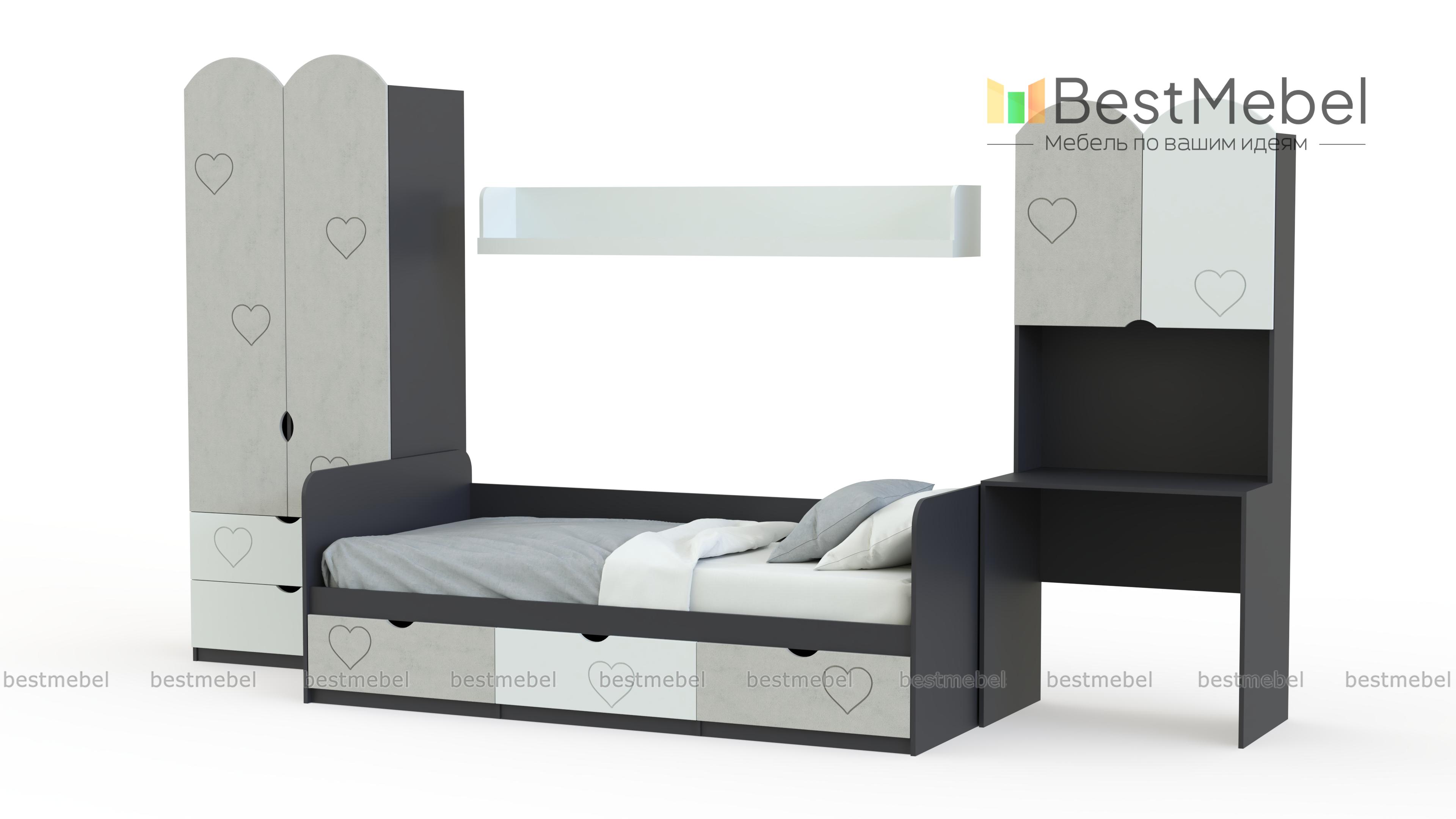 Детская комната Сказка 21 BMS оборудована всем самым необходимым для комфортного отдыха, учебы и хранения вещей ребенка. В комплекте кровать с тремя выдвижными ящиками для постельного белья или игрушек в основании, платяной шкаф и компьютерный стол с надстройкой в виде распашного шкафчика. Корпус древесного оттенка дополняют фасады в терракотовом цвете, украшенные фрезеровкой, дверцы фигурно вырезаны. Купить детскую комнату Сказка 21 BMS приглашаем в наш интернет-магазин.
