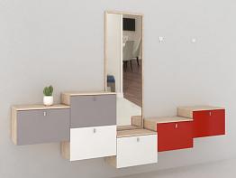 Прихожая с подвесными ящиками и зеркалом Квик BMS