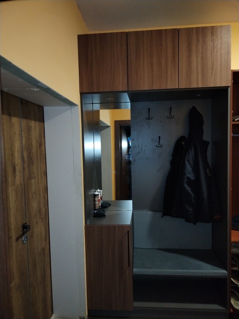 Прихожую заказывал вторым заказом после того, как получил штраф - купе. Шкаф понравился, поэтому и заказал прихожую. Вцелом только положительные впечатления. Хороший дизайн и качество. Очень порадовала точность размеров. Здесь прямо твёрдая пять. Особенно отмечу задние стенки изделий, они не просто куски оргалита, но полноценные доски ДСП, что придаёт изделию отличную жёсткость. Изделие было доставлено на адрес через неделю, или чуть больше, после оформления заказа!