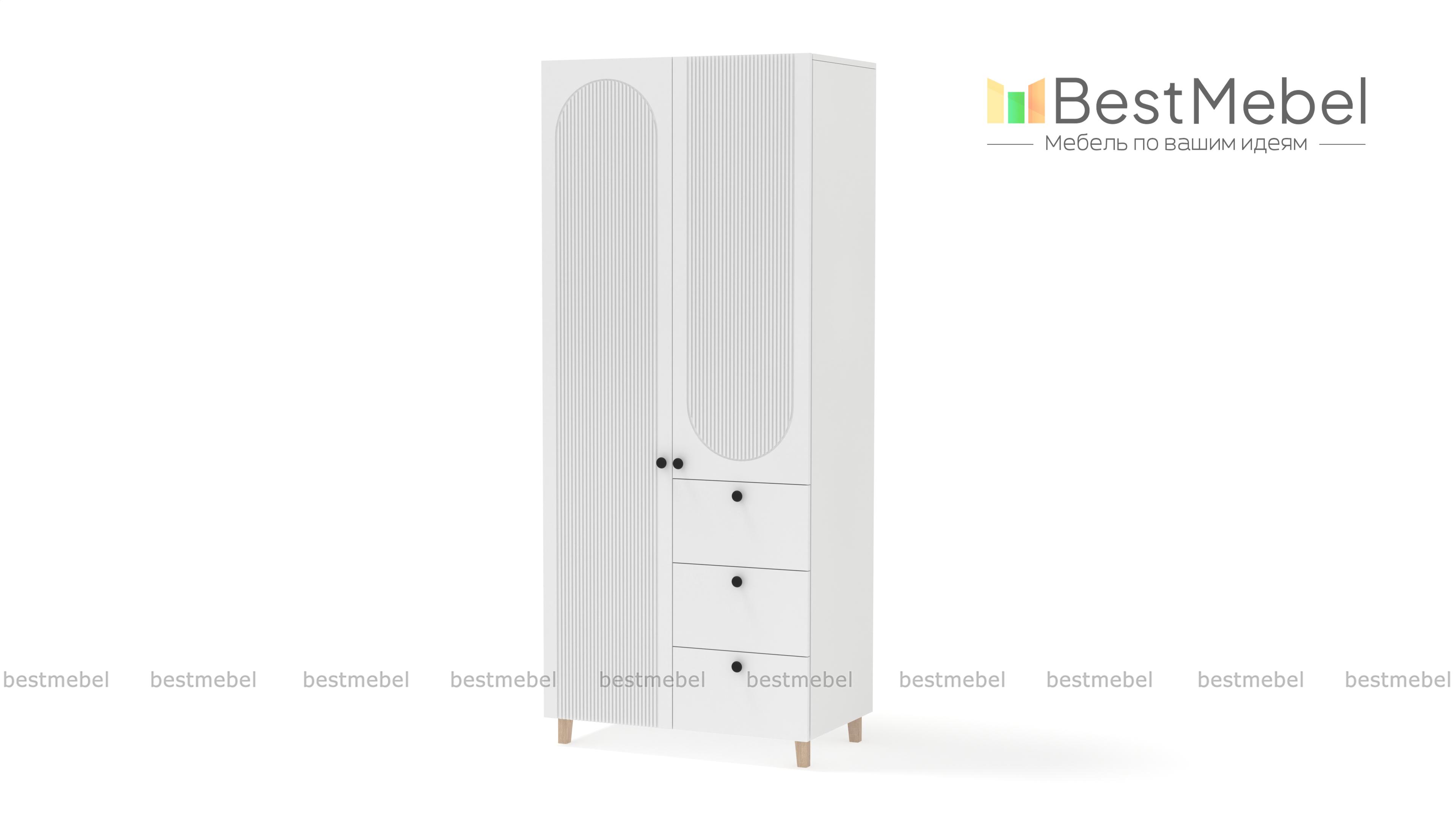 Шкаф распашной Рене 18 BMS — это небольшой гардероб, стильный и функциональный. Для хранения одежды предназначены распашные секции, а дополнение в виде трех выдвижных ящиков позволит разместить в порядке постельное белье и мелкий трикотаж. В отделке фасада шкафа использована оригинальная геометричная фрезеровка, высокие ножки добавят силуэту легкости. Купить шкаф распашной Рене 18 BMS вы всегда сможете в нашем интернет-магазине, самостоятельно подобрав цвета и размеры.