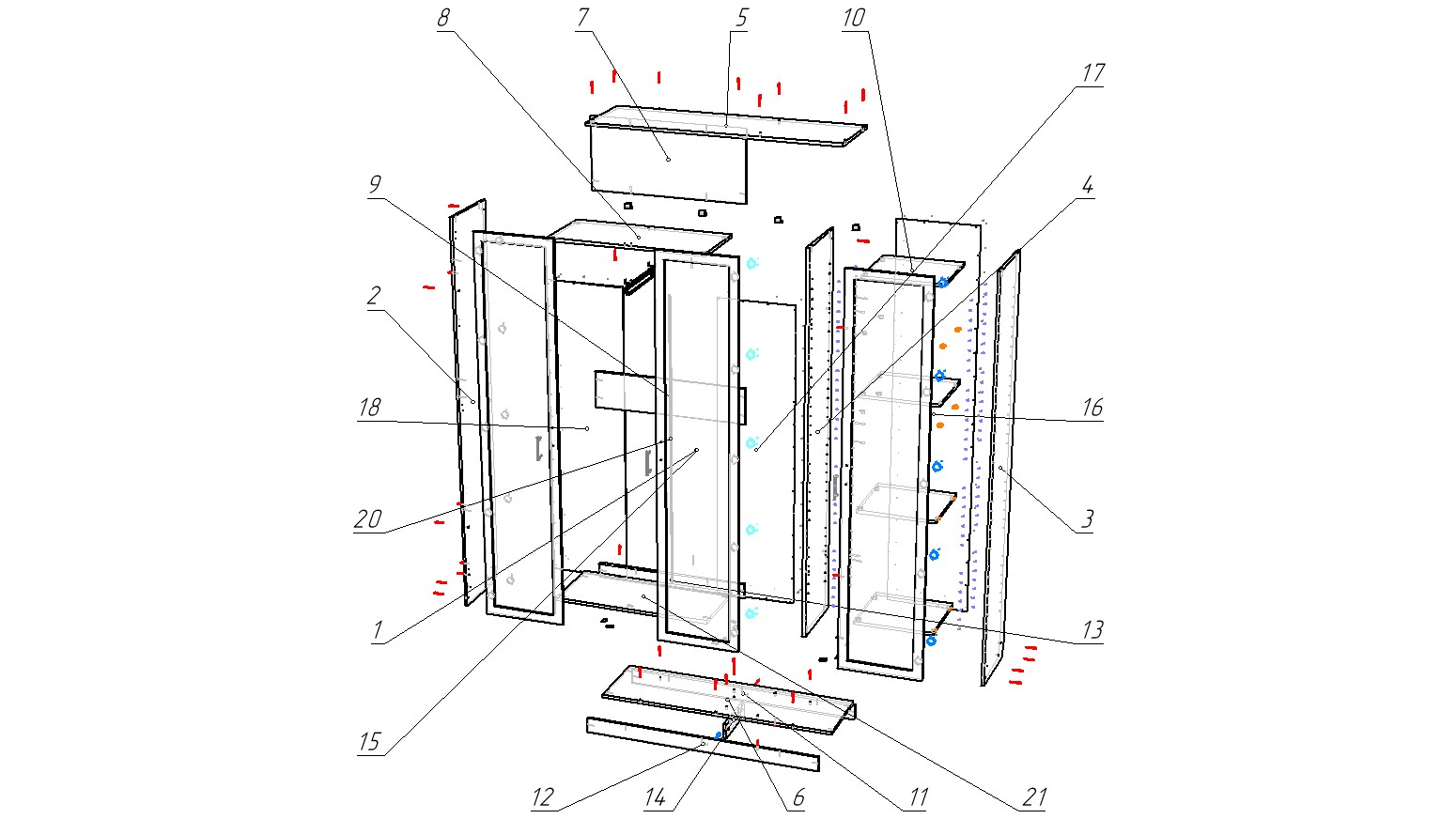 габариты шкафа: длина 1300, высота 2150, глубина 500;