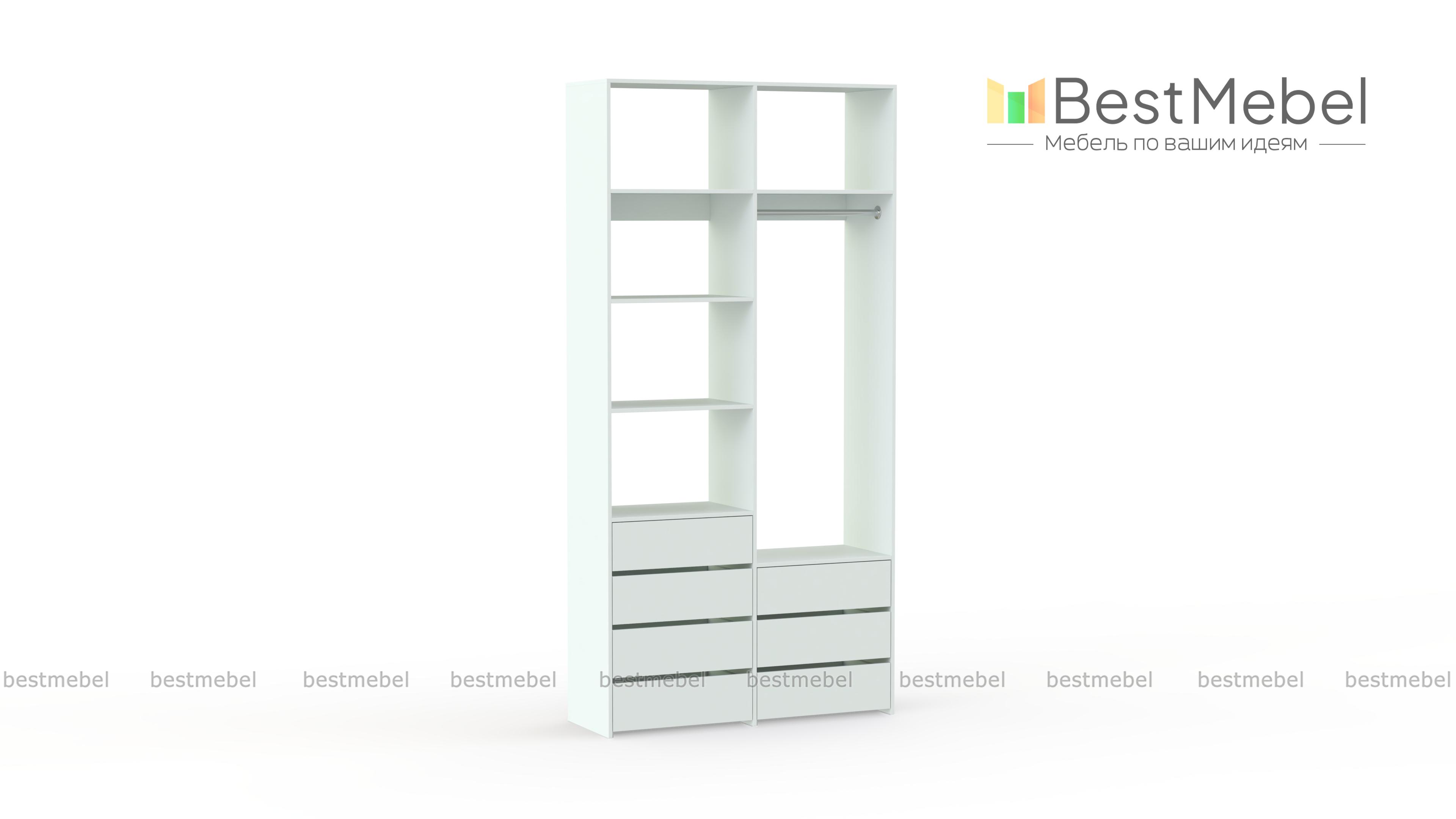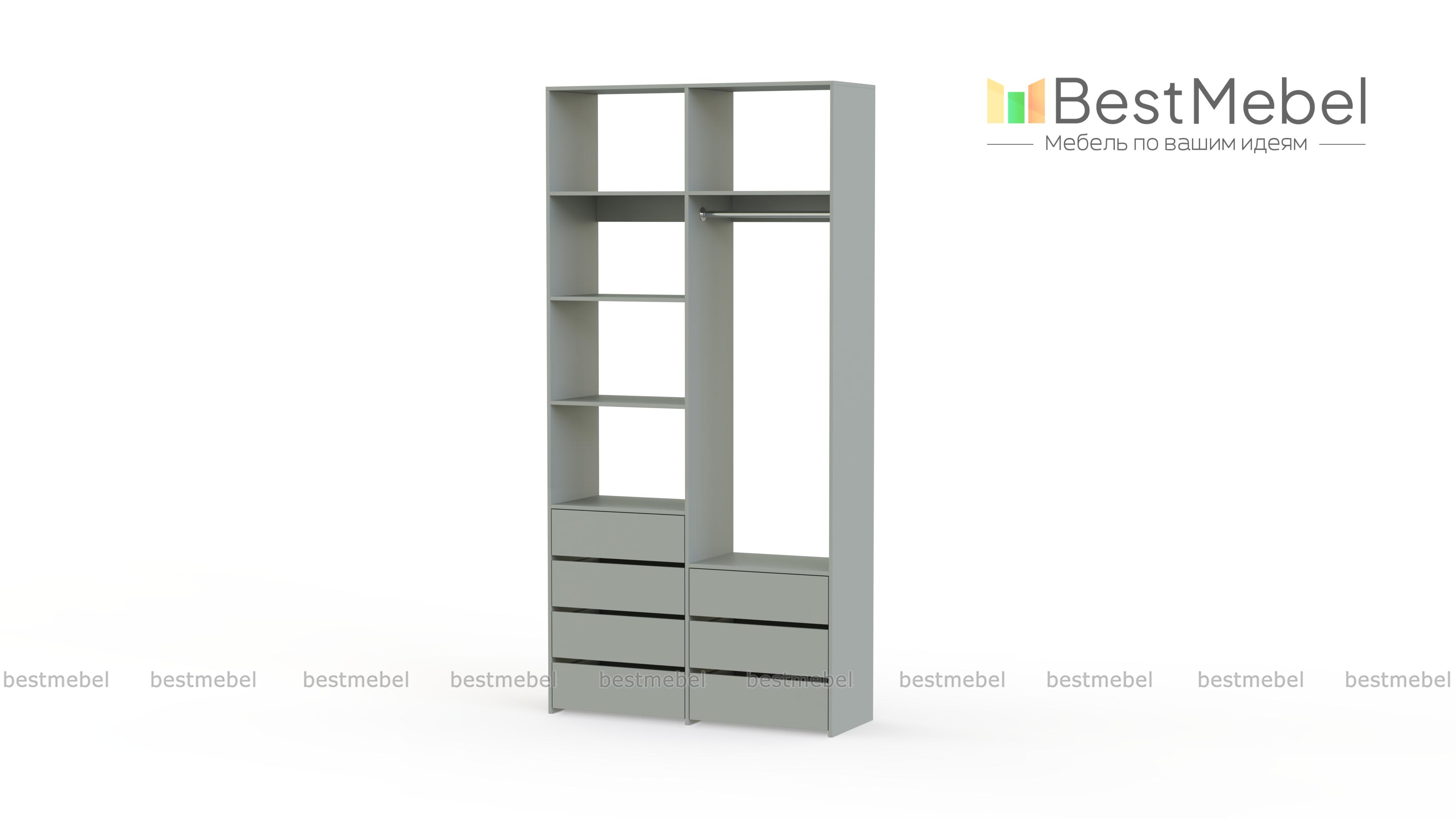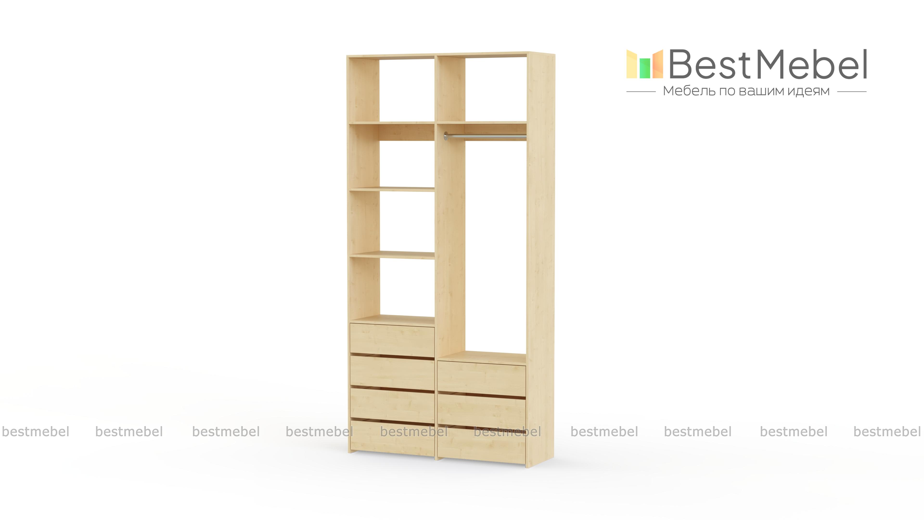 Стеллаж для одежды Мирта 41 BMS позволит вам зонировать пространство для хранения. Компактная двухсекционная конструкция разделена на отсек для вешалок, бельевые полки и два ряда выдвижных ящиков — под аксессуары, трикотаж и другие мелкие вещи. Для простого функционального дизайна стеллажа оптимально подходит светлый базовый оттенок. Купить стеллаж для одежды Мирта 41 BMS вы всегда сможете на сайте нашего интернет-магазина, по желанию изменив цвет и размеры.