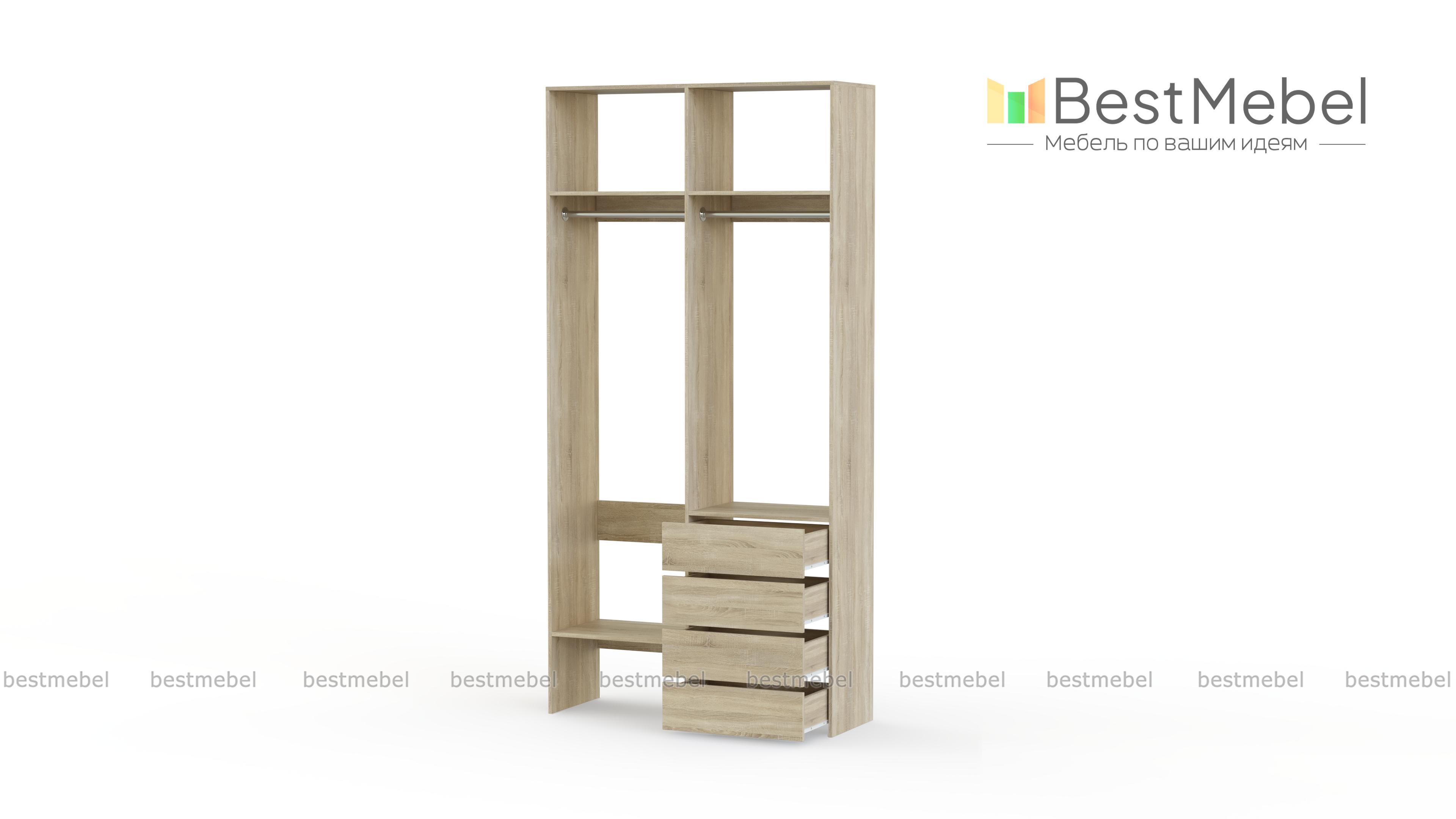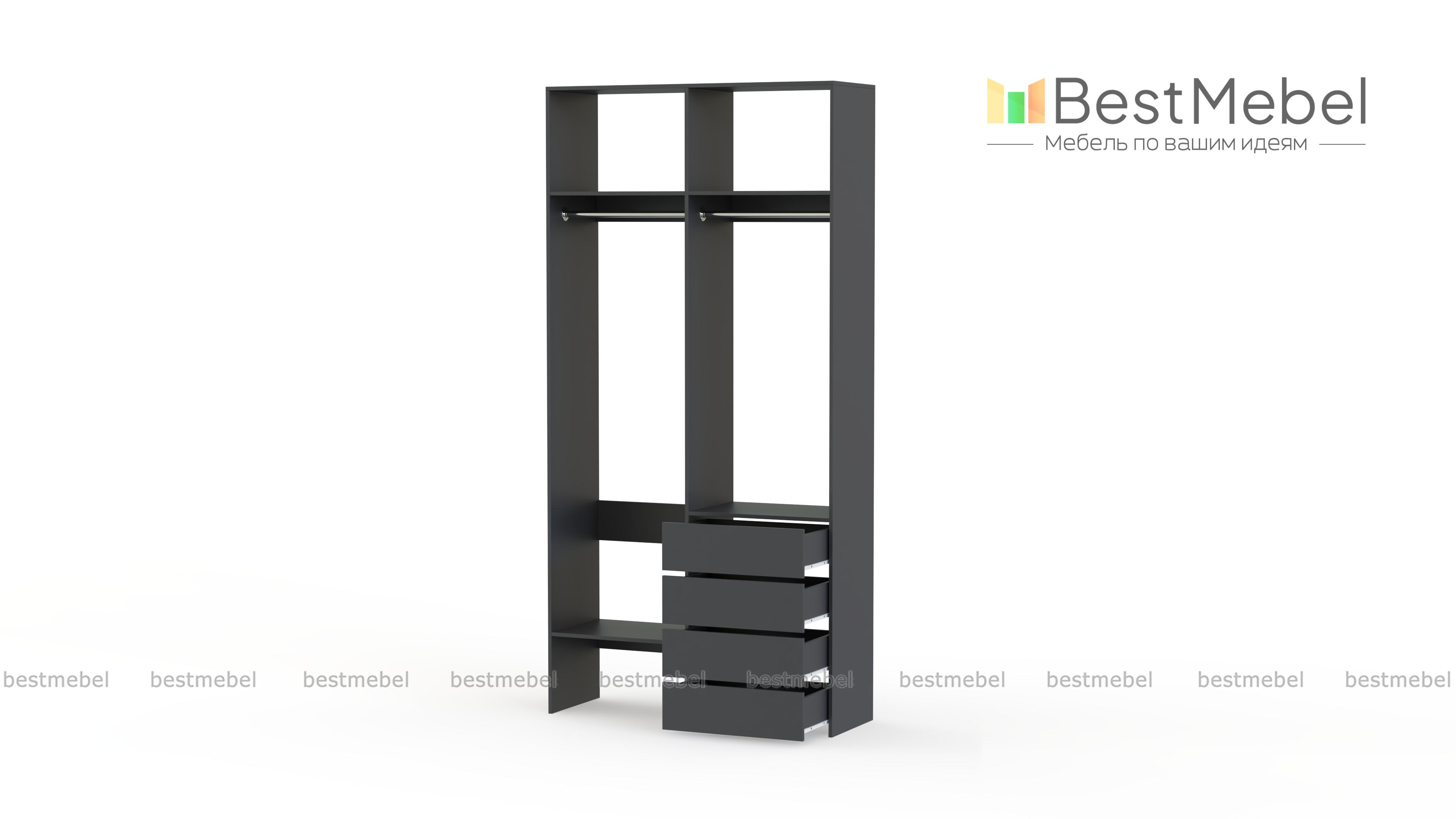 Стеллаж для одежды Мирта 45 BMS позволяет выделить зоны для хранения разных вещей. Комплектация включает в себя отделения со штангами для короткой и длинной одежды, полки сверху и снизу, а также ряд из четырех выдвижных ящиков справа. Двухсекционный стеллаж выполнен в светлом базовом оттенке и отлично смотрится на небольшом метраже. Купить стеллаж для одежды Мирта 45 BMS вы всегда сможете в нашем интернет-магазине, подобрав нужные размеры и оттенок по каталогу.