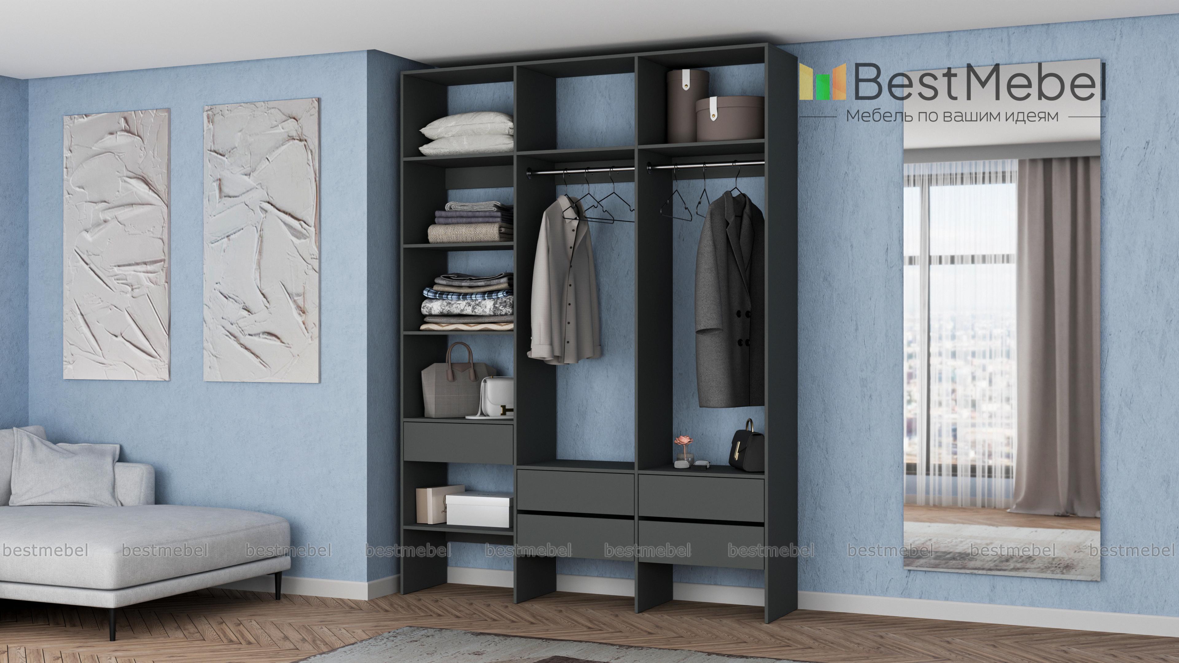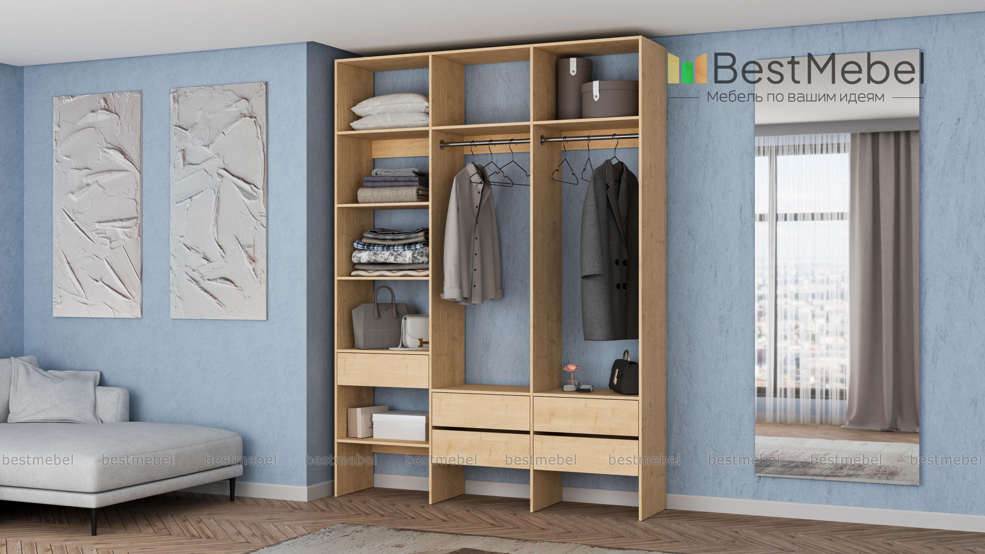 Стеллаж для одежды Мирта 53 BMS поможет вам организовать хранение в гардеробной комнате или прихожей. Открытая конструкция включает два отделения со штангами, пять выдвижных ящиков и полки, на которых можно разместить как обувь, так и стопки одежды, домашний текстиль, коробки с мелочами. Ламинированные поверхности отличаются износостойкостью и простотой ухода. Купить стеллаж для одежды Мирта 53 BMS в любом размере и оттенке из каталога приглашаем в наш интернет-магазин.