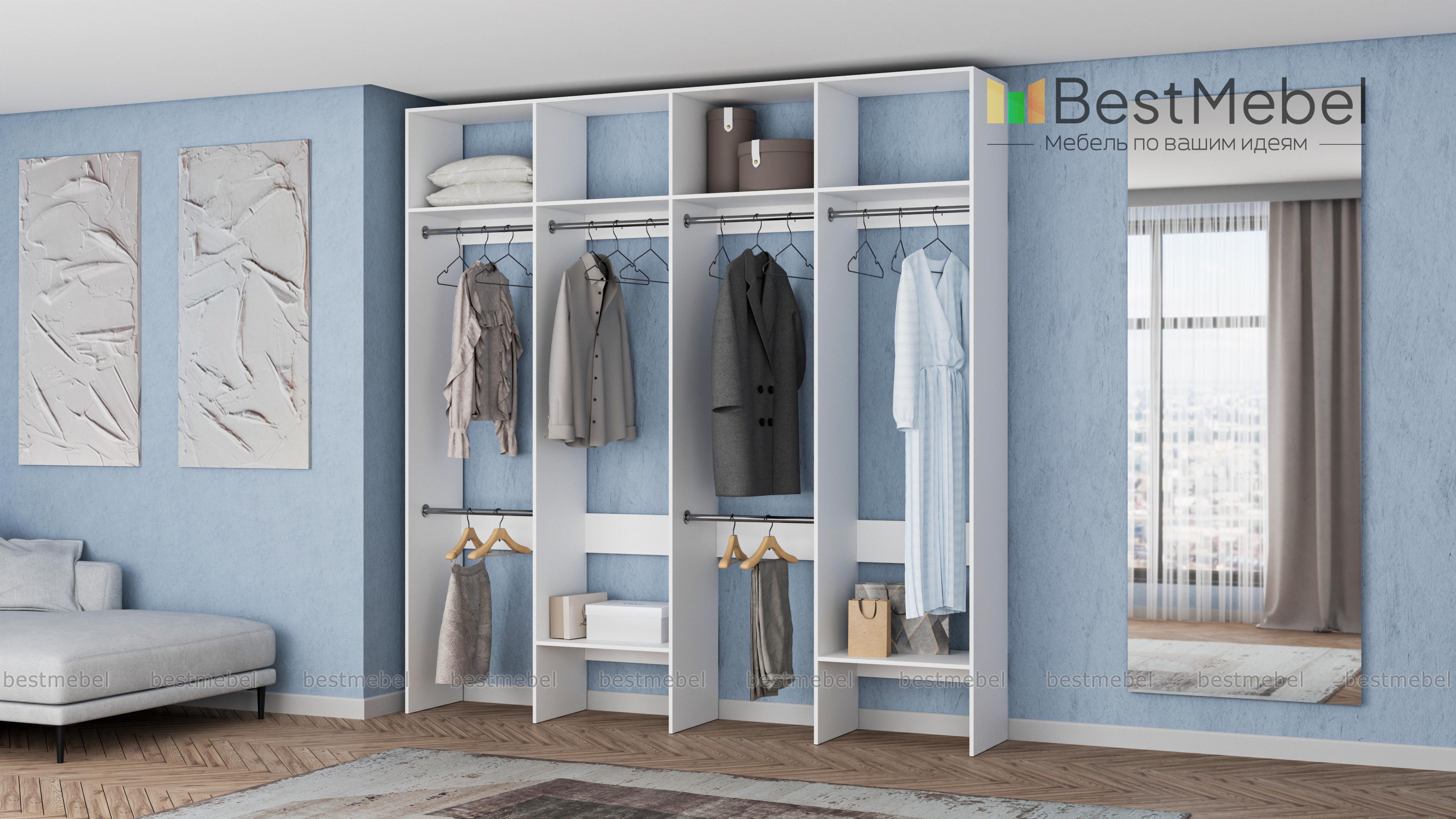 Стеллаж для одежды Мирта 62 BMS представляет собой внешне легкую и вместительную конструкцию. Разделенный на четыре секции, стеллаж оборудован расположенными на разной высоте штангами для короткой и длинной одежды, верхними и нижними полками. Отличное решение для гардеробной, стеллаж экономит пространство и обеспечивает аккуратное хранение одежде и обуви. Купить стеллаж для одежды Мирта 62 BMS, подобрав необходимые размеры, вы сможете на сайте нашего интернет-магазина.