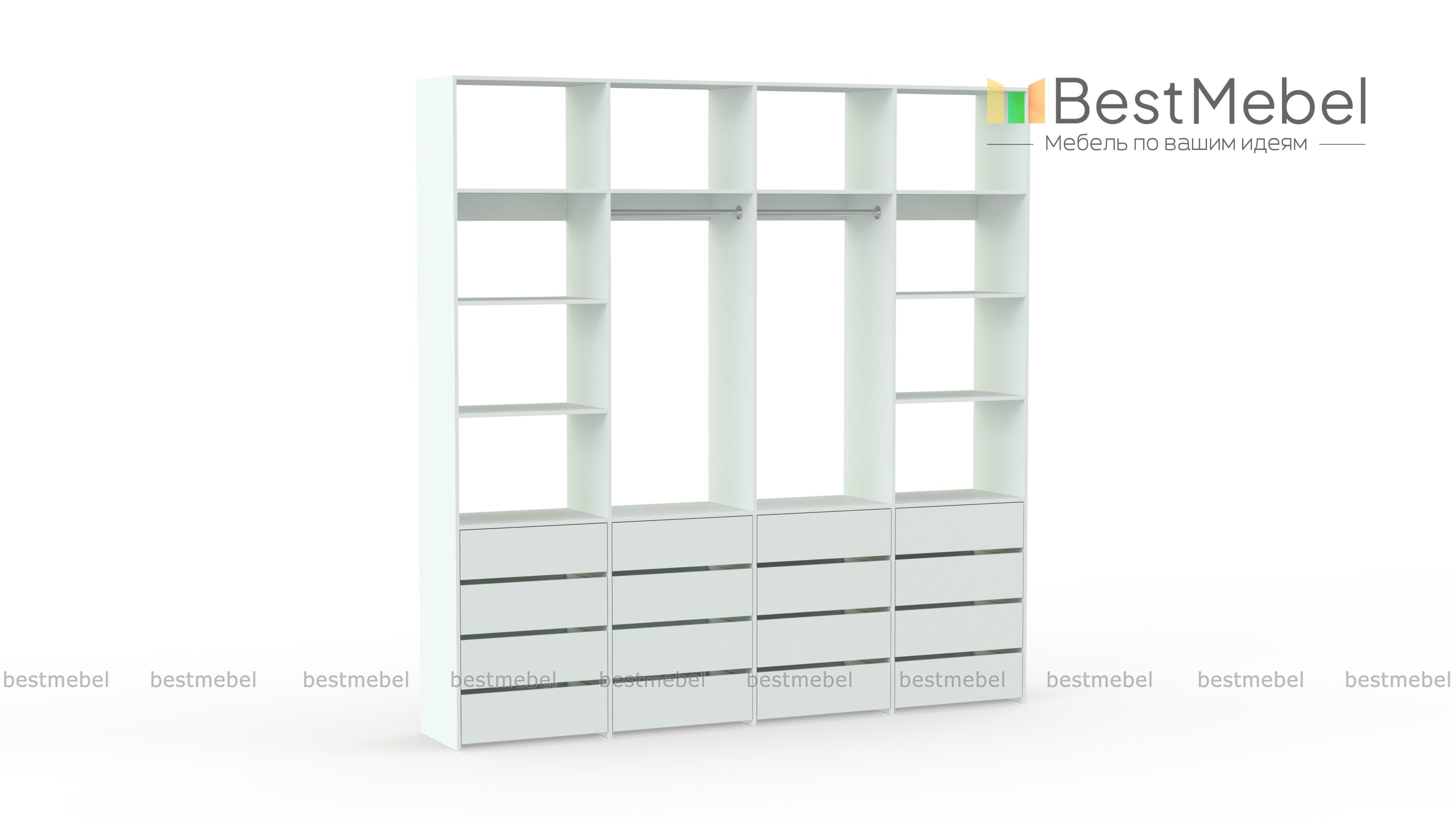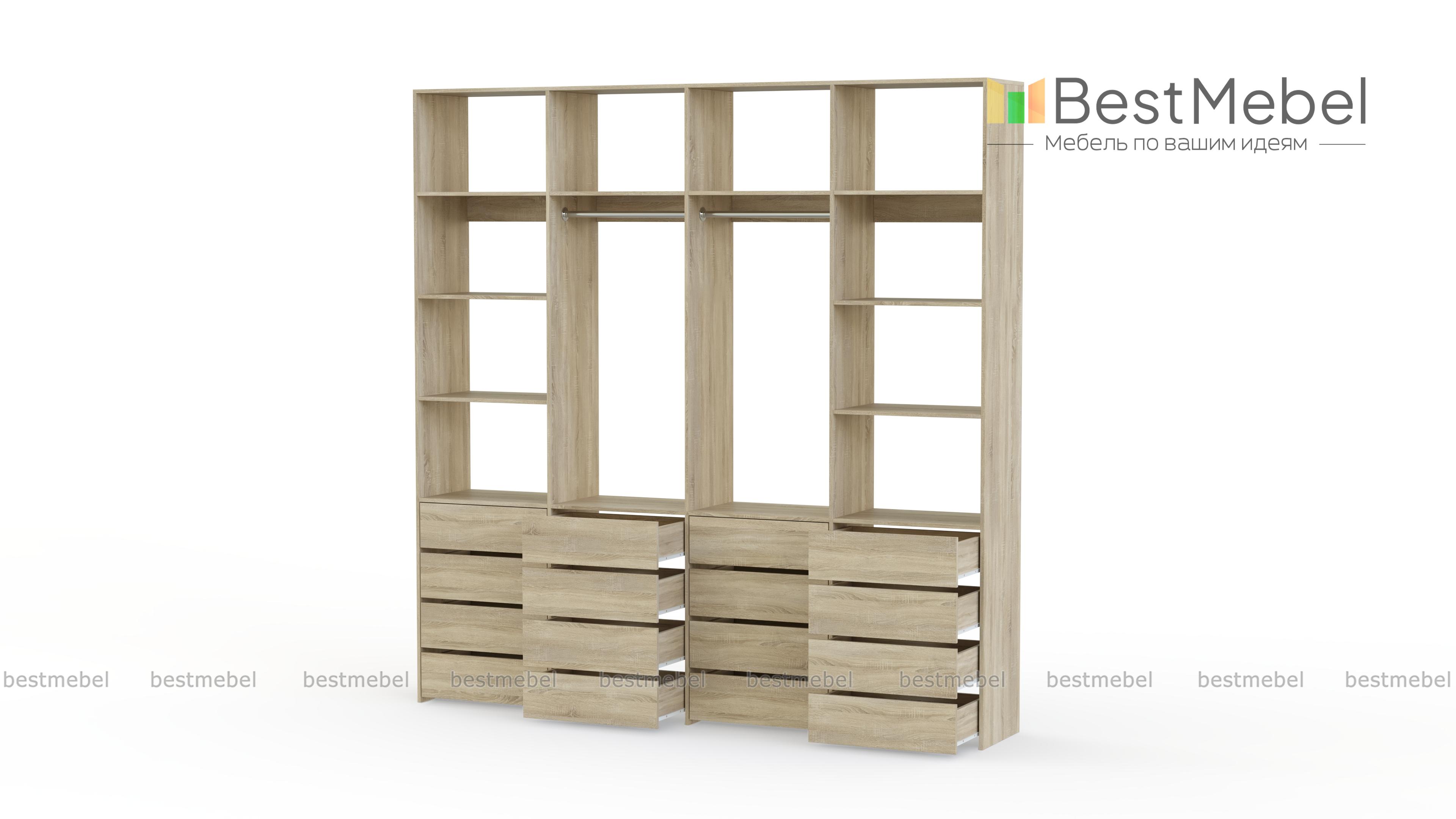 Стеллаж для одежды Мирта 63 BMS — это продуманная система хранения и функциональный современный дизайн. Две штанги и полки помогут разместить вешалки с одеждой, обувные коробки и текстиль, а четыре ряда выдвижных ящиков станут полноценной заменой бельевому комоду. Для изготовления стеллажа использована ламинированная ДСП высокого качества и надежная фурнитура. Купить стеллаж для одежды Мирта 63 BMS с выбором размера и цвета по каталогу приглашаем в наш интернет-магазин.