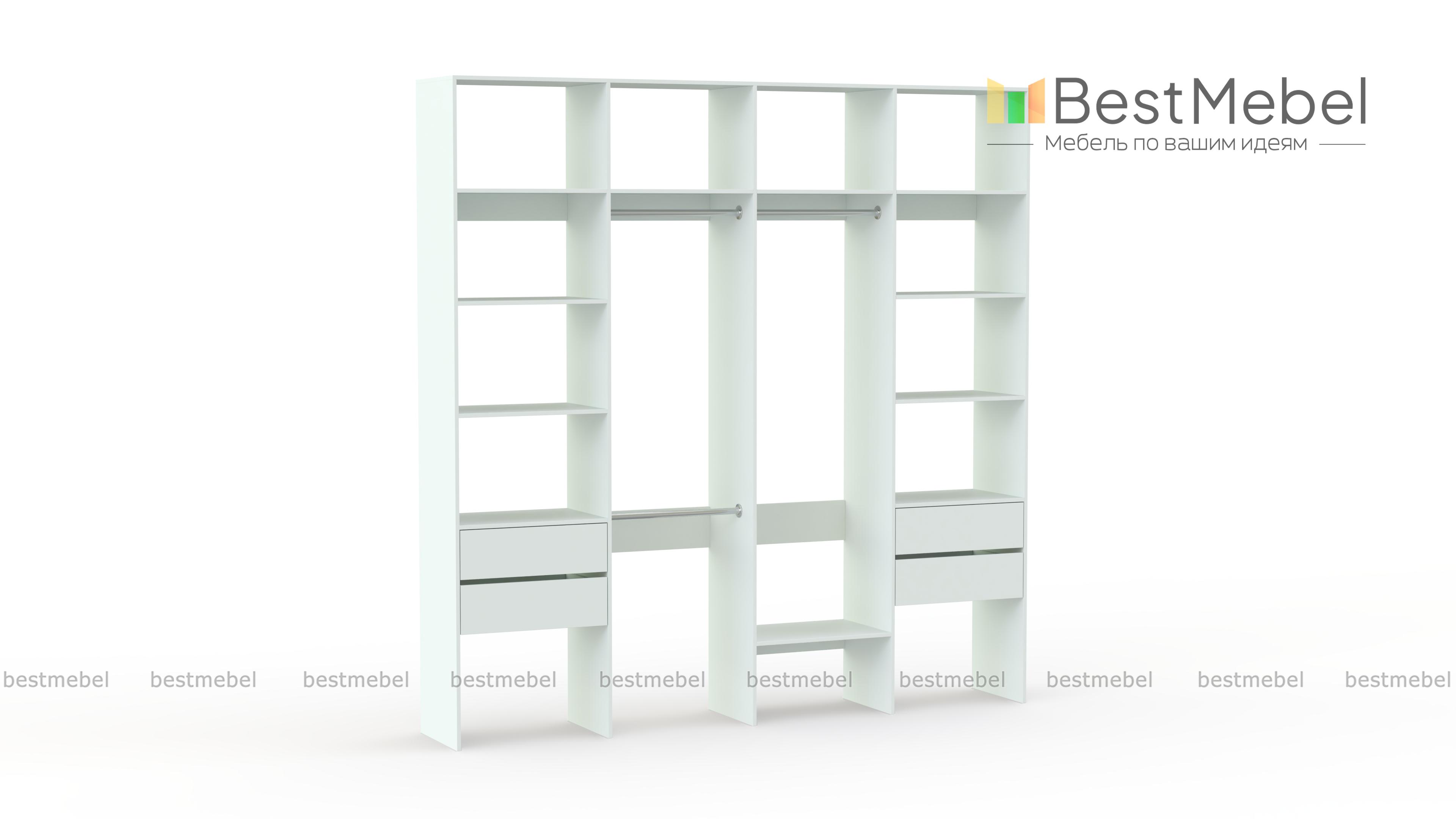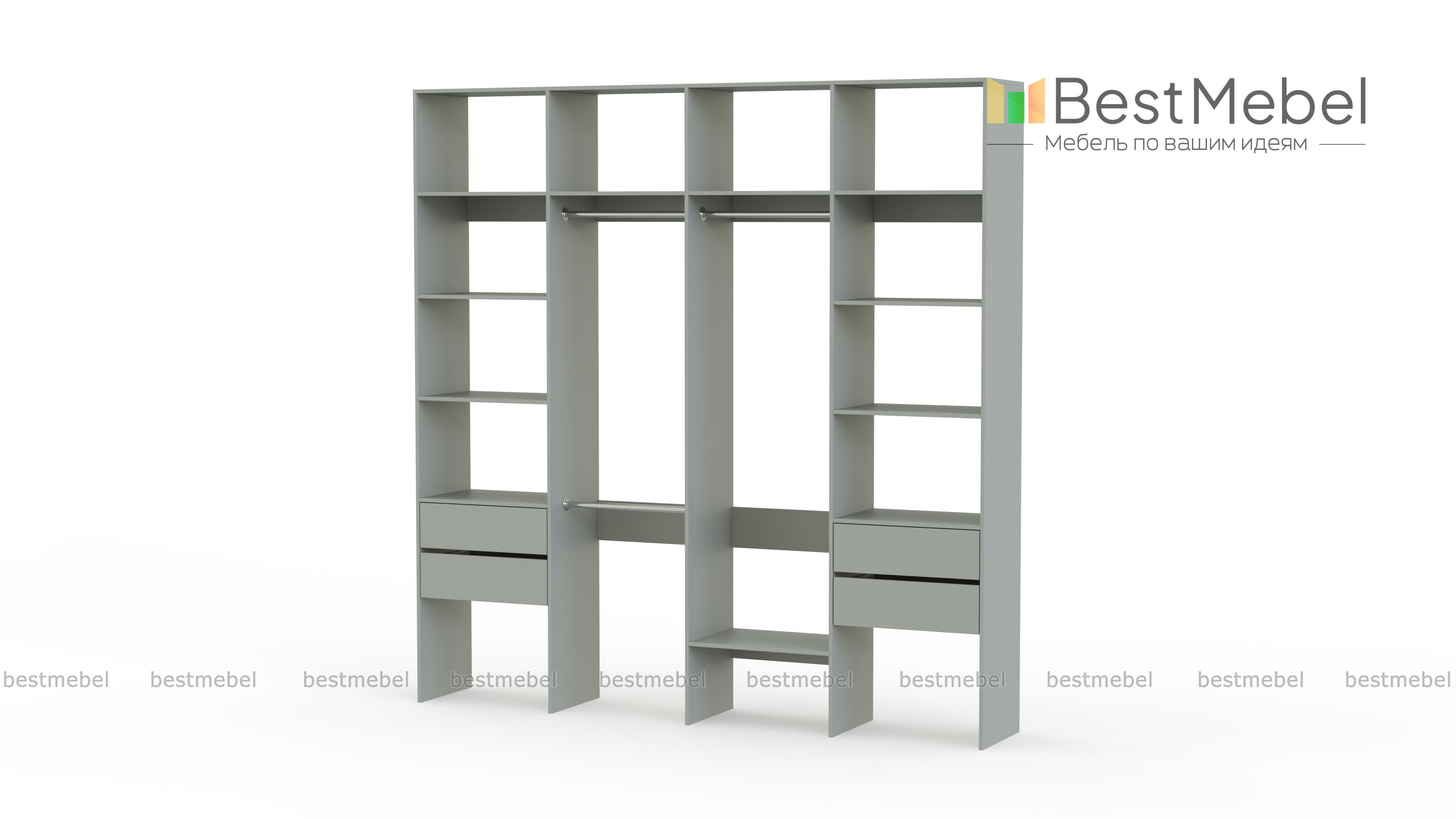 Стеллаж для одежды Мирта 66 BMS поможет вам разгрузить пространство квартиры от громоздких шкафов. Комплектация включает в себя разноуровневые штанги для одежды, вместительные полки и четыре выдвижных ящика, позволяющих хранить в порядке мелкие вещи. Благодаря использованию ламинированной плиты стеллаж доступен по цене, отличается прочностью и имеет широкую цветовую палитру. Купить стеллаж для одежды Мирта 66 BMS с изготовлением по индивидуальным размерам приглашаем в наш интернет-магазин.