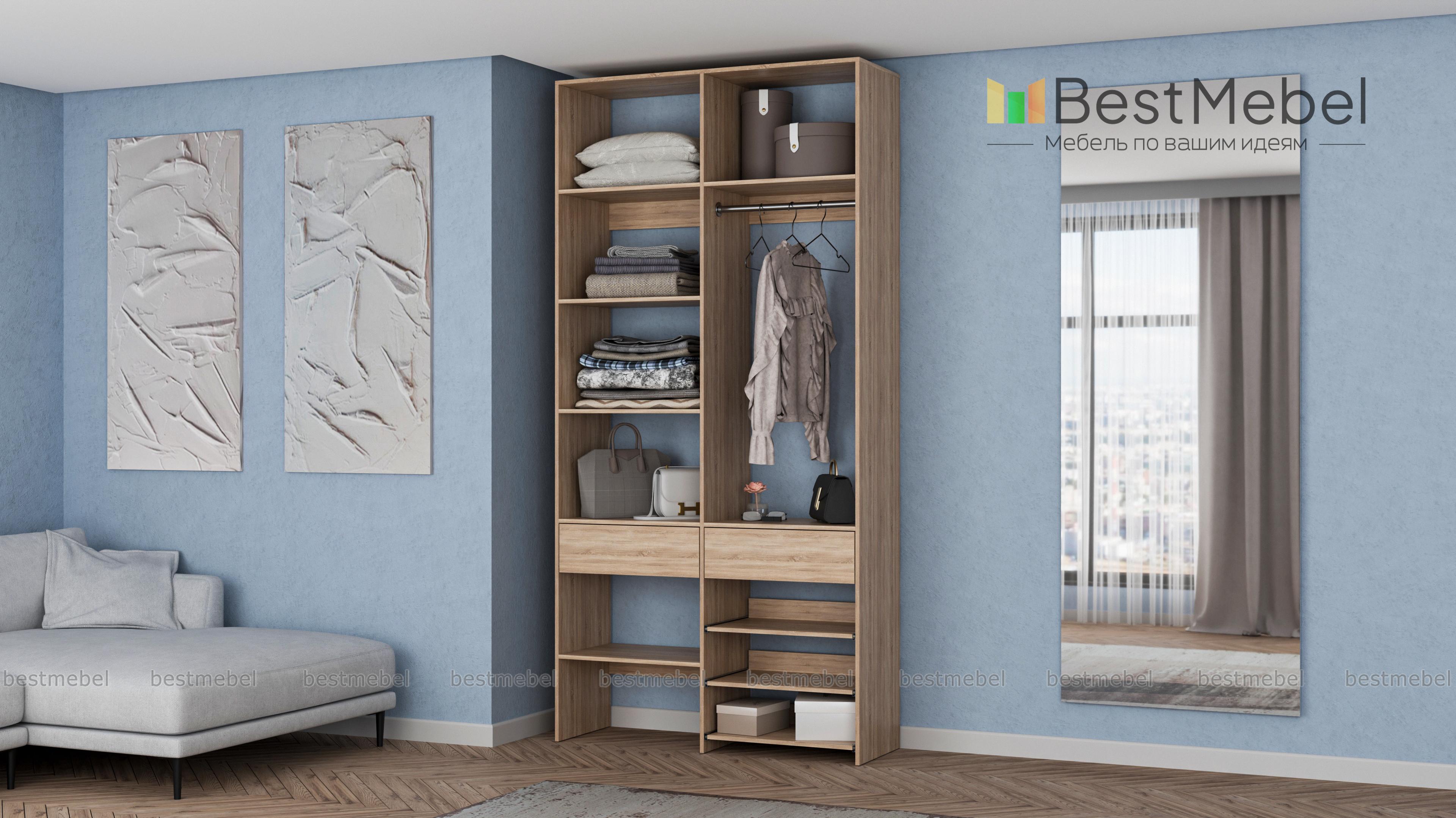 Стеллаж для одежды Мирта 81 BMS — компактная и вместительная система хранения в прихожую, спальню, гардеробную. Одежная штанга, два ящика под аксессуары и мелкий трикотаж, ряд бельевых полок и выдвижных панелей имеют эргономичное размещение. Благодаря простой форме и современному функциональному дизайну стеллаж легко комбинируется с другими предметами обстановки. Купить стеллаж для одежды Мирта 81 BMS приглашаем в наш интернет-магазин, подобрав цвет и размеры.