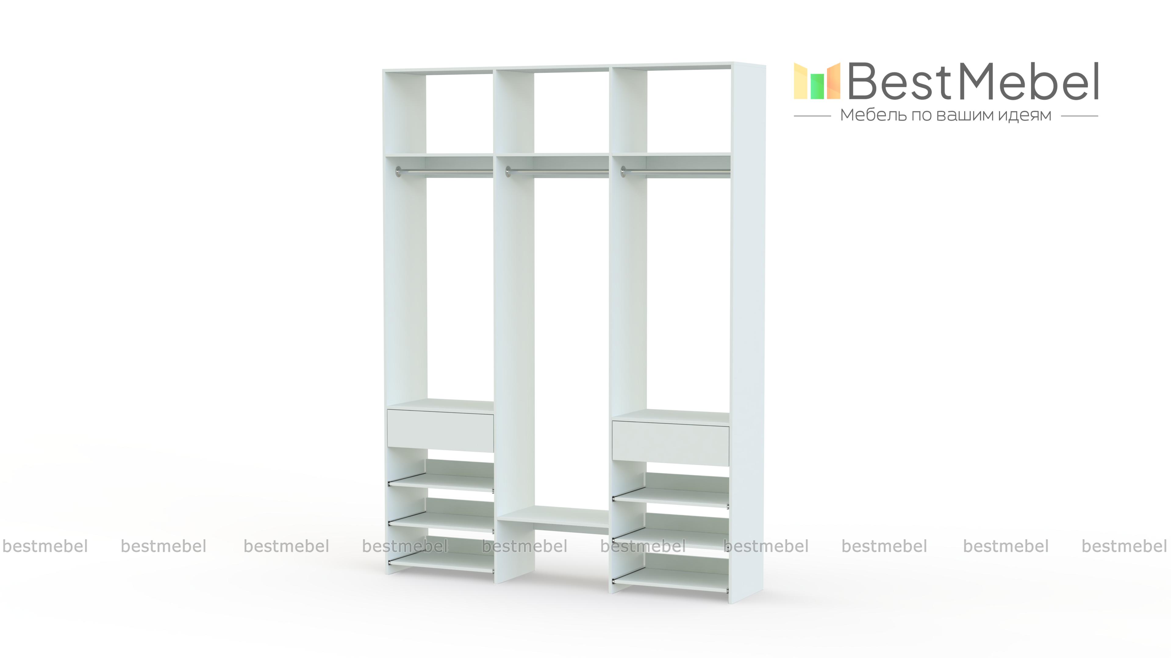 Стеллаж для одежды Мирта 91 BMS позволяет разместить вещи на виду и в легком доступе. Для хранения короткой и длинной одежды на вешалках, сложенных вещей, мелкого трикотажа и обуви идеально подходит комбинация из трех штанг, верхних полок, выдвижных панелей и пары ящиков. Стеллаж из ламинированной ДСП с древесным рисунком прочный и эстетичный, при этом доступный по цене. Купить стеллаж для одежды Мирта 91 BMS в любом оттенке из каталога и нужном размере приглашаем к нам в интернет-магазин.
