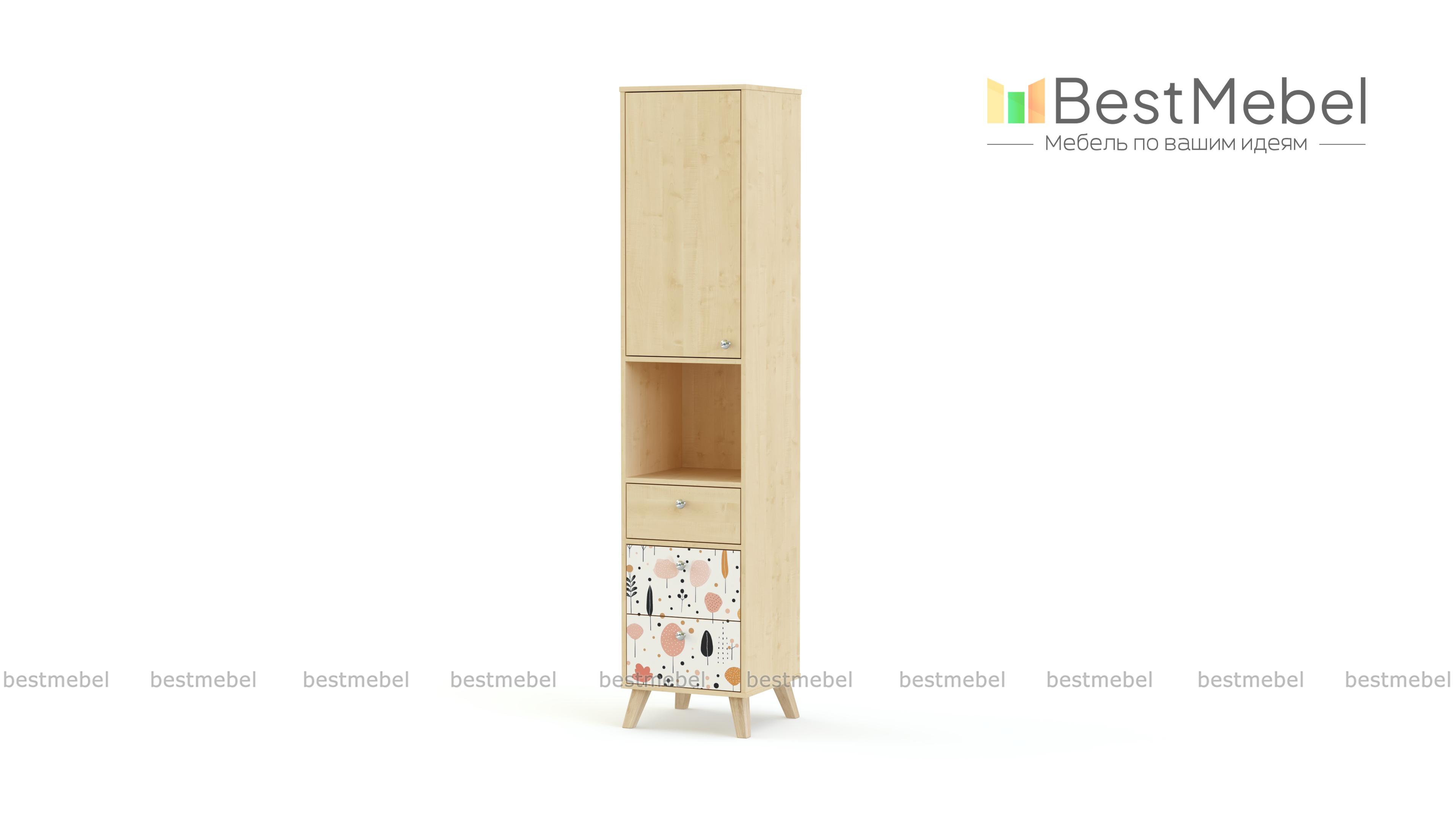 Стеллаж Эльза 4 BMS с высокими сканди-ножками легко смотрится даже в маленькой детской. На комфортной для ребенка высоте располагаются закрытое отделение с полками, просторная ниша и три выдвижных ящика, позволяя самостоятельно убирать книги и игрушки. Современный дизайн лаконичный и совсем не скучный благодаря симпатичной фотопечати на нижних фасадах. Купить стеллаж Эльза 4 BMS с выбором размеров, цвета и фурнитуры приглашаем в наш интернет-магазин.