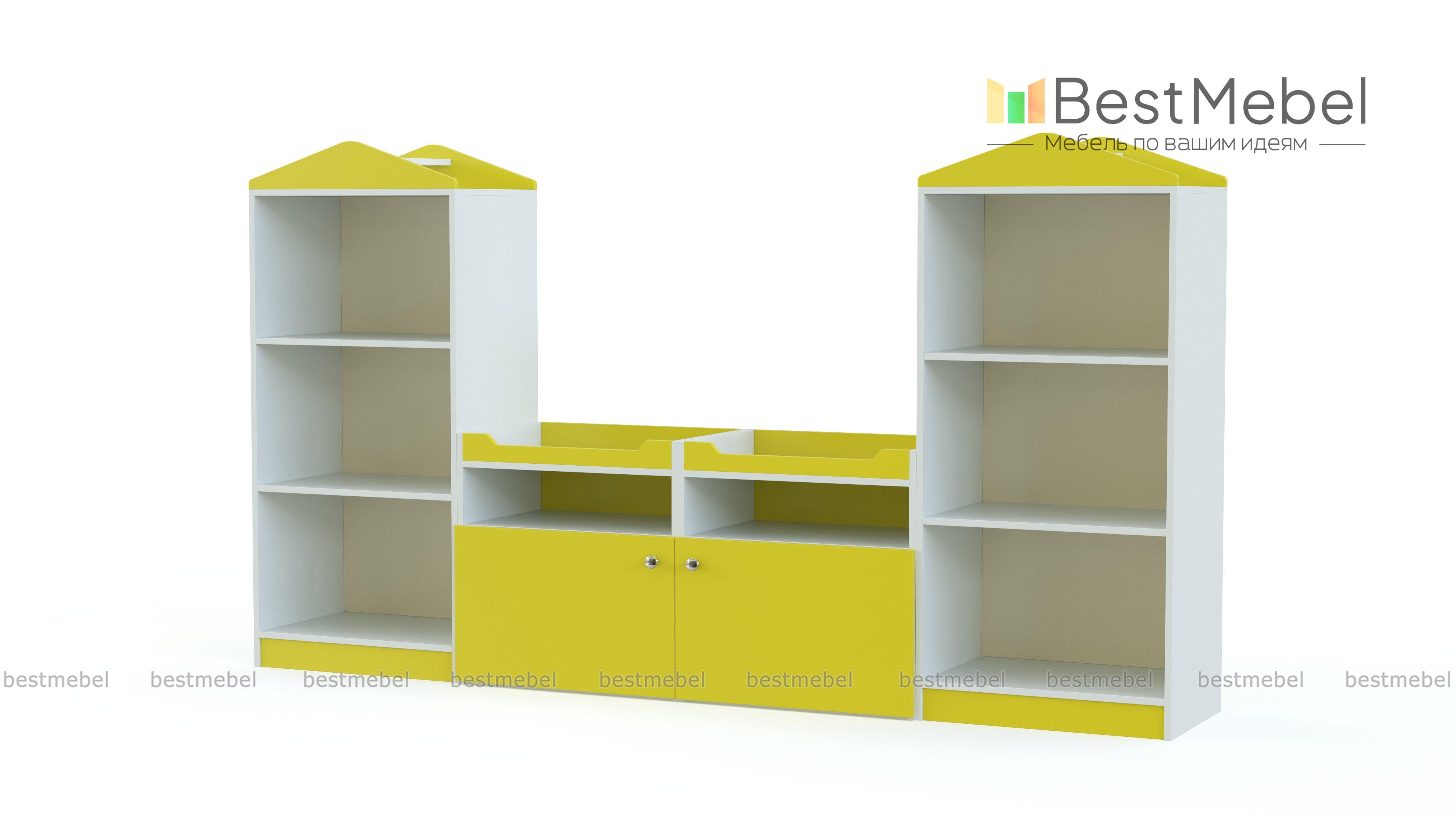 Стеллаж Юстина 4 BMS поможет оборудовать игровую зону в домашнем интерьере, детском саду или досуговом центре. Оригинальная композиция включает в себя четыре модуля – два высоких, выполненных в форме домика, и два низких, легко комбинирующихся друг с другом. Оборудованный открытыми полками и глубокими выкатными ящиками, стеллаж компактно разместит книги, игрушки и учебные материалы. Купить стеллаж Юстина 4 BMS с возможностью изготовления по индивидуальным размерам приглашаем в наш интернет-магазин.