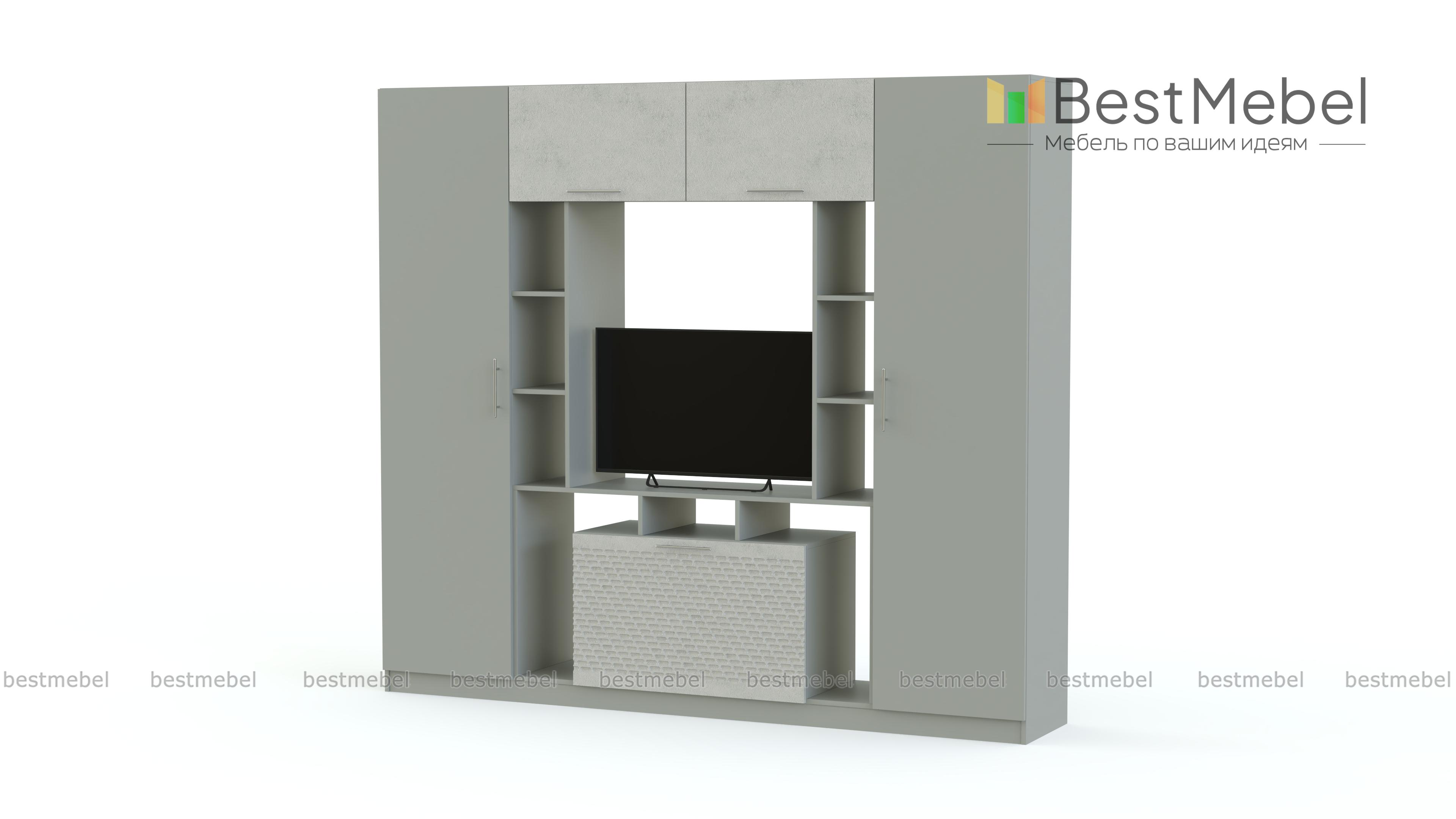 Стенка в гостиную Блеск 13.1-3D BMS станет главным акцентом в домашнем интерьере и поможет оборудовать стильную зону отдыха. Композиция удобных средних габаритов включает в себя тумбу под ТВ с нишами и стеллажами, глухие антресольные секции и два симметрично расположенных бельевых шкафа. Классические древесные тона дополнены вставками терракотового оттенка с эффектным рельефом. Купить стенку в гостиную Блеск 13.1-3D BMS по демократичной цене вы сможете в нашем интернет-магазине.