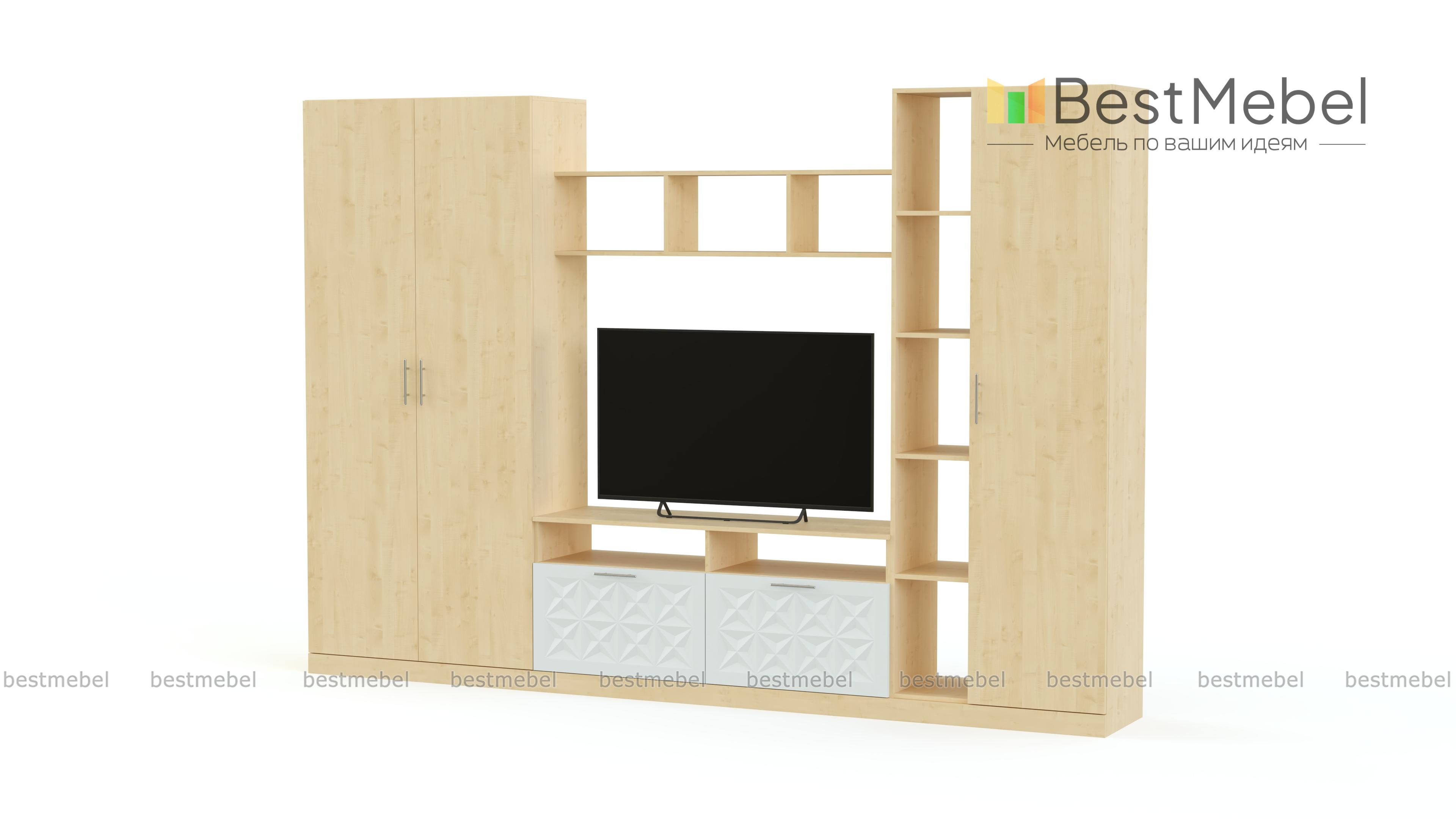 Стенка Вельвет 17 BMS из популярной серии объединила классические традиции и современную функциональность. Гармоничная композиция включает в себя низкую тумбу под ТВ, платяной двухдверный шкаф, антресоль и комбинированный шкаф с закрытой бельевой секцией и стеллажом. Отделения разного типа позволят разместить аппаратуру, книги, одежду и многочисленные бытовые мелочи. Интересным акцентом в домашнем интерьере станет сочетание оттенков под массив дерева и терракотового с рельефным рисунком. Купить стенку Вельвет 17 BMS приглашаем недорого в наш интернет-магазин.
