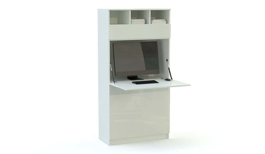 Компьютерный стол-трансформер Галатея 4 BMS, выполненный в белом глянце, гармонично впишется в современные минималистичные интерьеры. В сложенном виде трансформер может использоваться как шкаф для хранения книг, бумаг и прочих рабочих материалов, а при помощи откидной столешницы превратится в стол. В нижней части модели располагается распашное отделение, в верхней – открытые полки, за столешницей скрыта ниша под монитор. Купить компьютерный стол-трансформер Галатея 4 BMS с учетом нужных размеров вы сможете в нашем интернет-магазине.