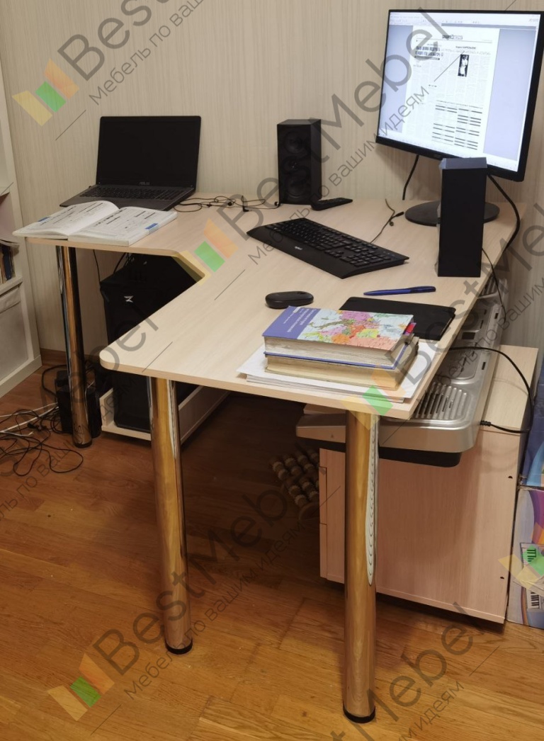 Наконец дошли руки до отзыва. Стол был куплен еще в январе этого года, собирала сама в одиночку, ну кот еще помогал, как мог)), сложностей не возникло, разве что шуруповерт был бы не лишним, но и так нормально. За все время использования никаких нареканий, стол крайне удобный, для тех кто дома по долгу сидит за компьютером и порой хочется вытянуть ножки)))Хочу выразить огромнейшую благодарность за терпение, учатие и содействие отделу проектирования BestMebelShop, поименно увы не знаю кто помогал, но все пожелания были учтены и размеры полностью соответствуют заявленному мною макету, что для меня было критично поскольку живя в квартире-студии мебель размещается по принципу "тетриса" ни 1 кв.см. не должно зазря пропадать! Подставка под системный блок также удобна и проста в сборке, в любой момент можно подвинуть системник, если нужно убраться или что-то переключить, а не сгибаться в три погибели и лезть под стол.)