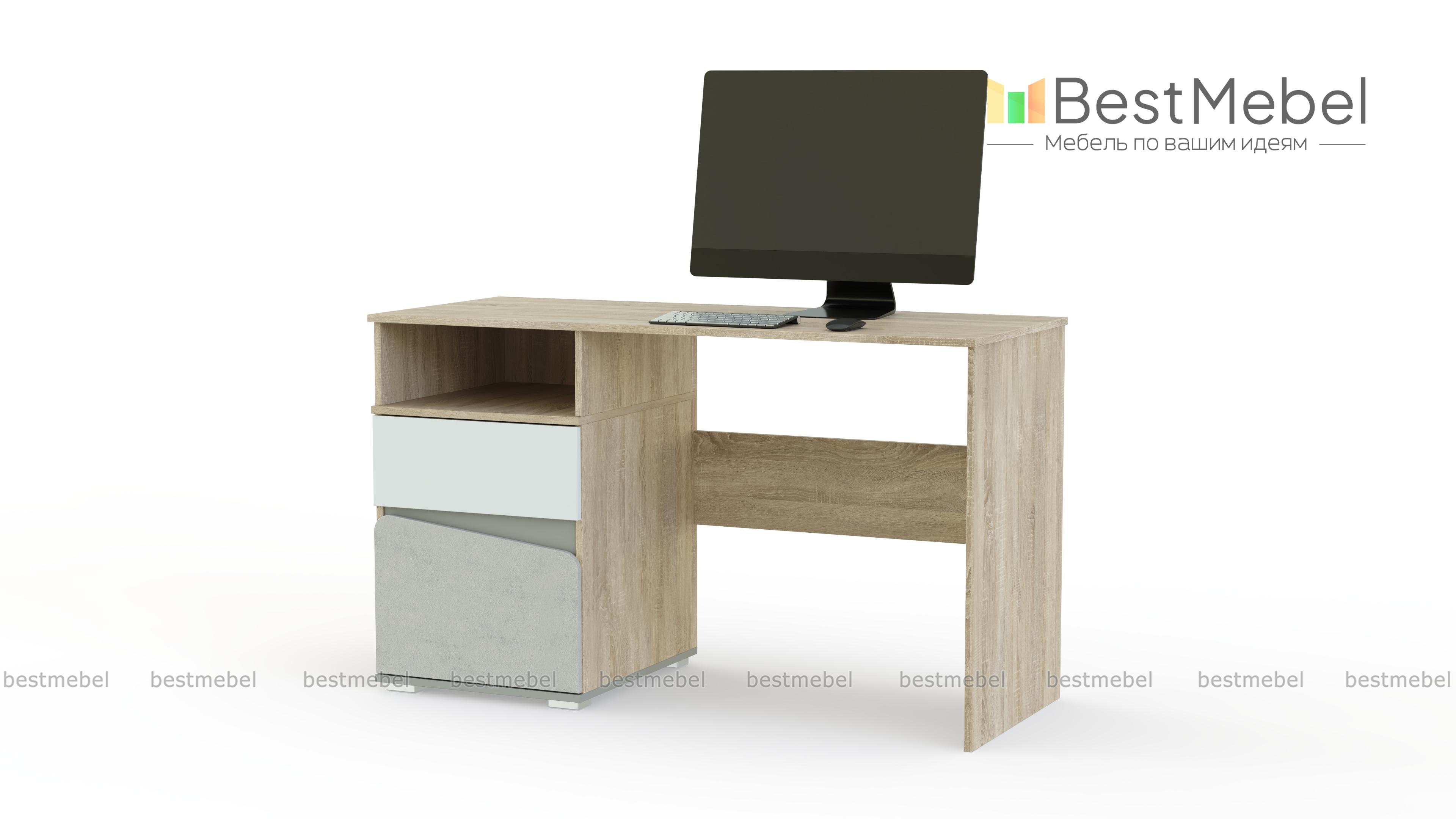 Стол письменный Алиса BMS поможет обустроить удобное рабочее место в комнате девочек. Модель оборудована просторной прямоугольной столешницей, на которой разместятся под рукой письменные принадлежности, и тумбой с нишей и двумя выдвижными ящиками разных размеров. Выполненный в светлых древесных тонах, столик декорирован контрастными вставками и гармонично впишется в современный детский интерьер. Купить стол письменный Алиса BMS приглашаем в наш интернет-магазин.