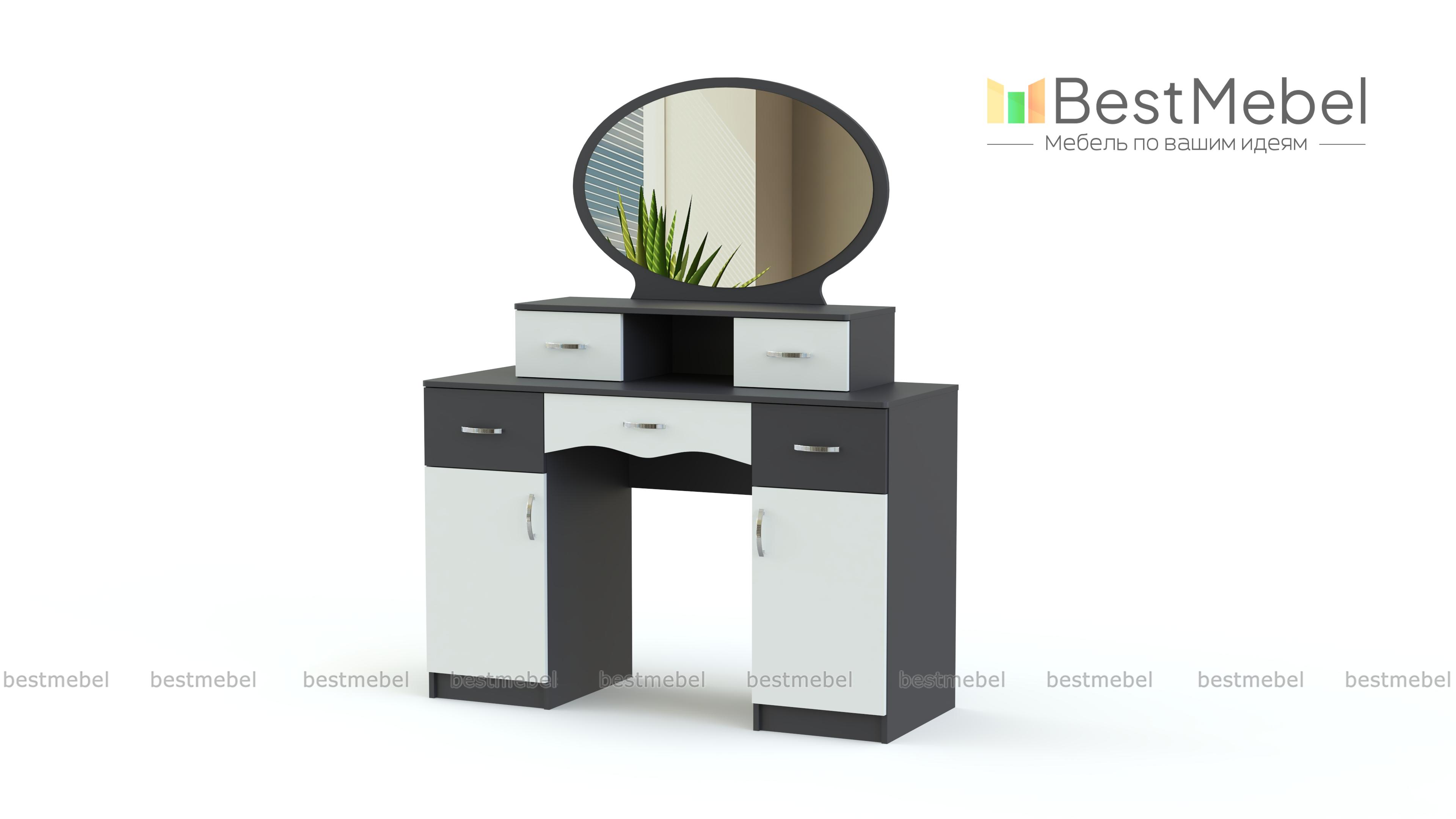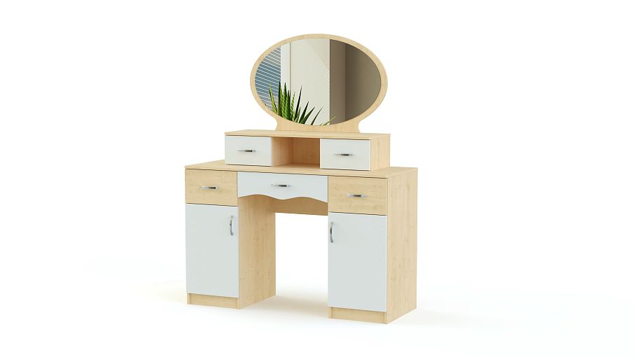 Этот очаровательный женственный столик – настоящий подарок поклонницам роскошных классических интерьеров. Овальное большое зеркало, расположенное горизонтально, дополняет полка с боковыми выдвижными ящичками для косметики и украшений. Под столешницей – вместительные тумбы для самых разных вещей. Туалетный столик Августин BMS смотрится особенно легко и изящно благодаря светлым тонам и затейливой фурнитуре. В спальне эта модель станет одним из основных акцентов.