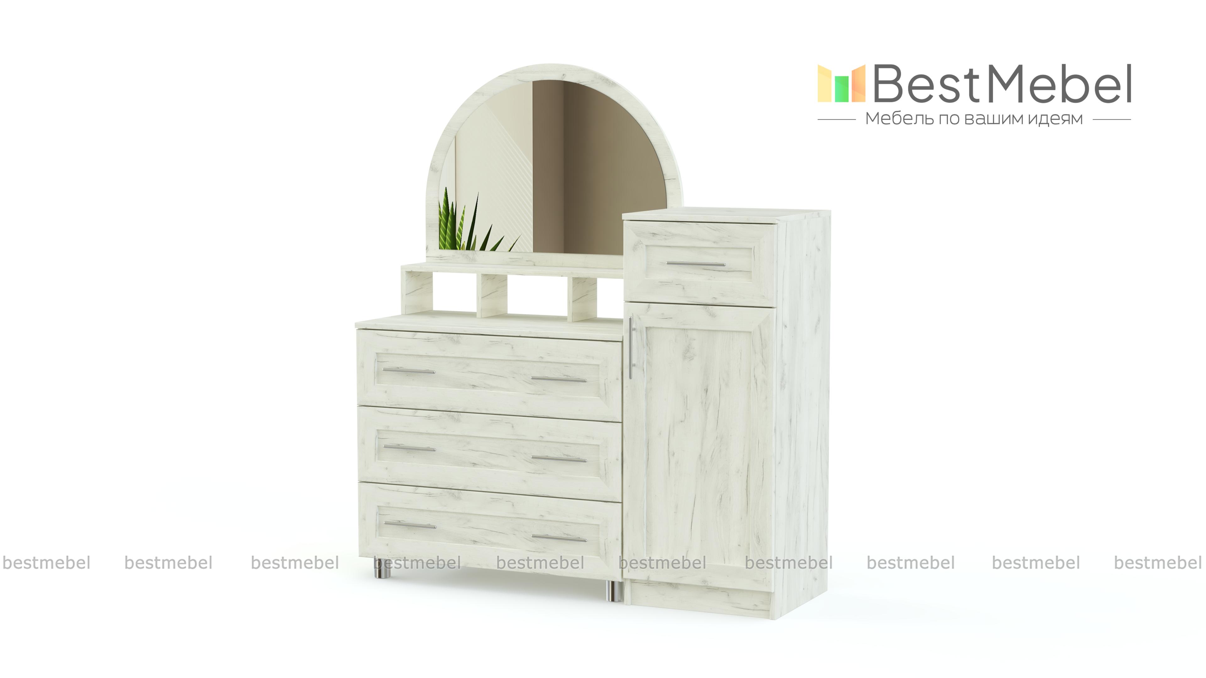 Туалетный столик Милена 7 BMS выполнен из экологически чистого материала, отличающегося долговечностью и высоким уровнем износостойкости. Универсальные тона придадут помещению ощущение уюта, а фигурное зеркало позволит с удобством нанести макияж. Модель оборудована просторными выдвижными ящиками и высоким распашным отделением, что поможет расположить максимальное количество необходимых уходовых средств и важных мелочей. Купить туалетный столик Милена 7 BMS по лучшей цене приглашаем в наш интернет-магазин.