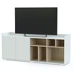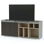 Тумба под ТВ Алтай 2 BMS с древесной вставкой поможет вам эффектно оформить телезону дома или в офисе. Широкая столешница ограничена невысокими бортиками, а для хранения домашних вещей, книг и телевизионных аксессуаров предусмотрены полки разных размеров и секция с распашными дверцами. Особенность современной серии - фрезерованный фасад с геометрическим узором. Купить тумбу под ТВ Алтай 2 BMS, подобрав цвет на свой вкус, вы сможете в нашем интернет-магазине.