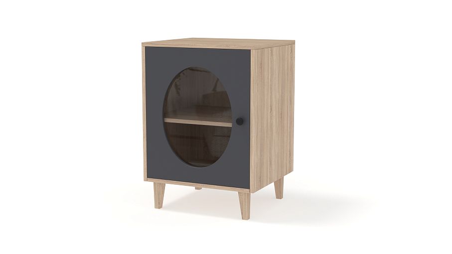 Тумба прикроватная Брукс 1 BMS с распашной дверцей и высокими ножками дополнит дизайн вашей спальни или детской и организует эстетичное хранение мелочей. Темный фасад со стеклом и округлым вырезом представляет собой стильную витрину. Внутреннее пространство тумбы разделено полкой для удобного размещения книг, уходовых средств и гаджетов. Купить тумбу прикроватную Брукс 1 BMS вы сможете в нашем интернет-магазине, изменив по своему вкусу цвет и размеры.