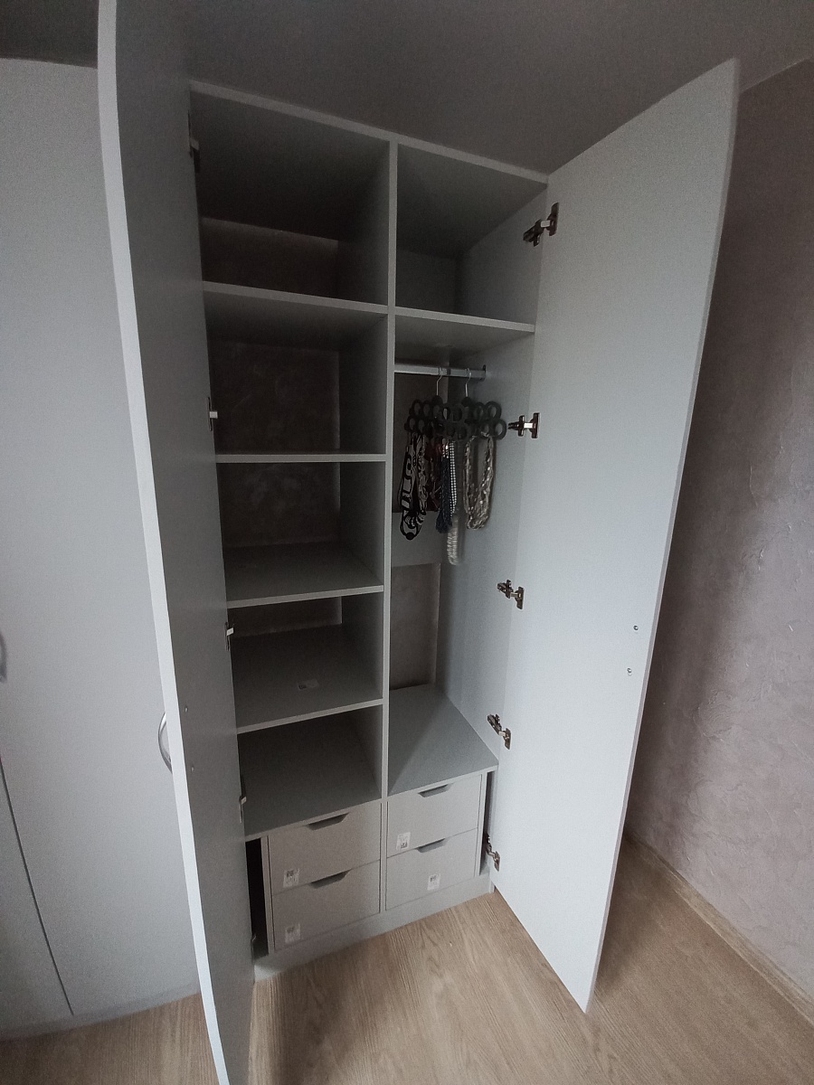Выбрала два шкафа с разным наполнением в сером цвете, убрав декор. Небольшой косяк - не доложили заднюю стенку к одному шкафу- довольно оперативно довезли. Сами шкафы удобные и вместительные.