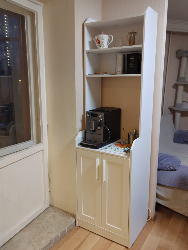 Очень долго искал стеллаж для ниши возле балконной двери на кухне, такой, чтобы в нем поместилась кофе-машина. Ни одна стандартная мебель для этого не подходила. Стеллаж Хауга-3 в стиле ИКЕА, сделанный по индивидуальным размерам, оказался идеальным решением  проблемы. Честно говоря, начитавшись некоторых отзывов, поначалу испытывал  опасения - сделают ли в срок, и не будет ли криво-косо. Но реальность эти опасения опровергла. Первым приятным сюрпризом стала возможность полностью оплатить заказ уже при его получении, никакой предоплаты не надо. Но особенно поразила скорость изготовления - на третий день после утверждения эскиза мне уже привезли готовый стеллаж. Собрал сам, затруднений это не вызвало. Схема понятная, фурнитуры - полный комплект. Один-единственный маленький минус был - при наклейке на фабрике 2мм-кромки на боковые стойки заклеили заодно и отверстия, куда должен вставляться крепеж. Но просверлить их не составило большого труда. А в остальном все идеально было подогнано, раньше так же приятно было собирать только икеевскую мебель. Особая благодарность менеджерам кол-центра за терпение при согласовании всех нюансов цветов и размеров. Буду обращаться еще, особенно, если понадобится мебель по индивидуальным размерам.
