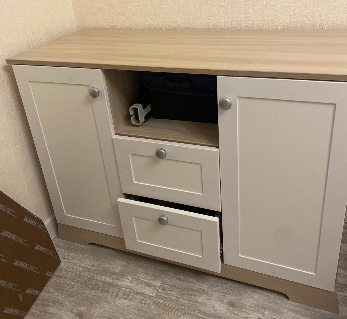 Уже не первый раз обращаюсь в эту компанию. Нравится, что можно заказать мебель по своим размерам, выбрать подходящие материалы и фурнитуру. Данный вариант тумбы (комода) понравился тем, что дверцы распашные как у шкафа-купе, не занимает много места, что не маловажно для небольшой студии (заказ № 888852 от 30 сентября). По срокам исполнения и качеству товара претензий нет, доставка вовремя. К тому же при неоднократных заказах на сайте, у меня накопилось много бонусов и окончательная стоимость изделия приятно порадовала Собирали самостоятельно по схеме, трудностей не вызвало. Все детали подошли, все ровно, без перекосов. Прекрасная тумба! По дизайну вписалась в остальную мебель и занимает совсем мало места. И даже небольшая студия кажется просторной, хотя мебели достаточно. Однозначно рекомендую производителя и магазин!