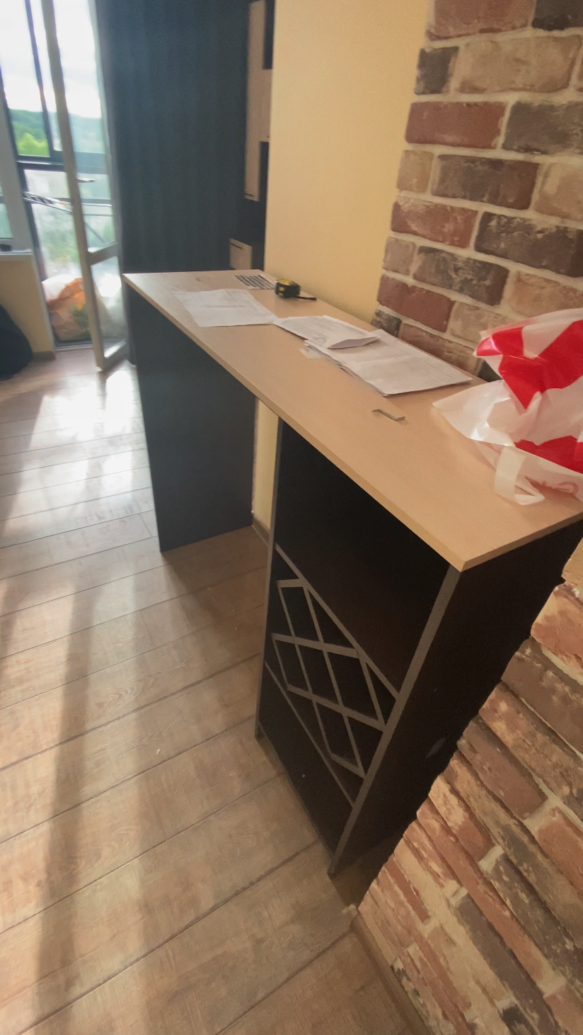 Заказ 00000697638. Действительно, необычный дизайн. Мы с мужем восторге. На кухне экономит место. Очень удобен и практичен. Цена и качество хорошее. Менеджер, молодец! Подсказал в выборе ткани на табурет и попал в точку. Телефон завис в это время, не могла ориентироваться в выборе ткани. Огромное ему спасибо, за внимательность, чуткость, знание своего дела! Доставка быстрая, не смотря на то, что в дороге пробили колесо. Всё доставлено вовремя.Собрали сами, всё без проблем. Будем ещё заказывать. 😊