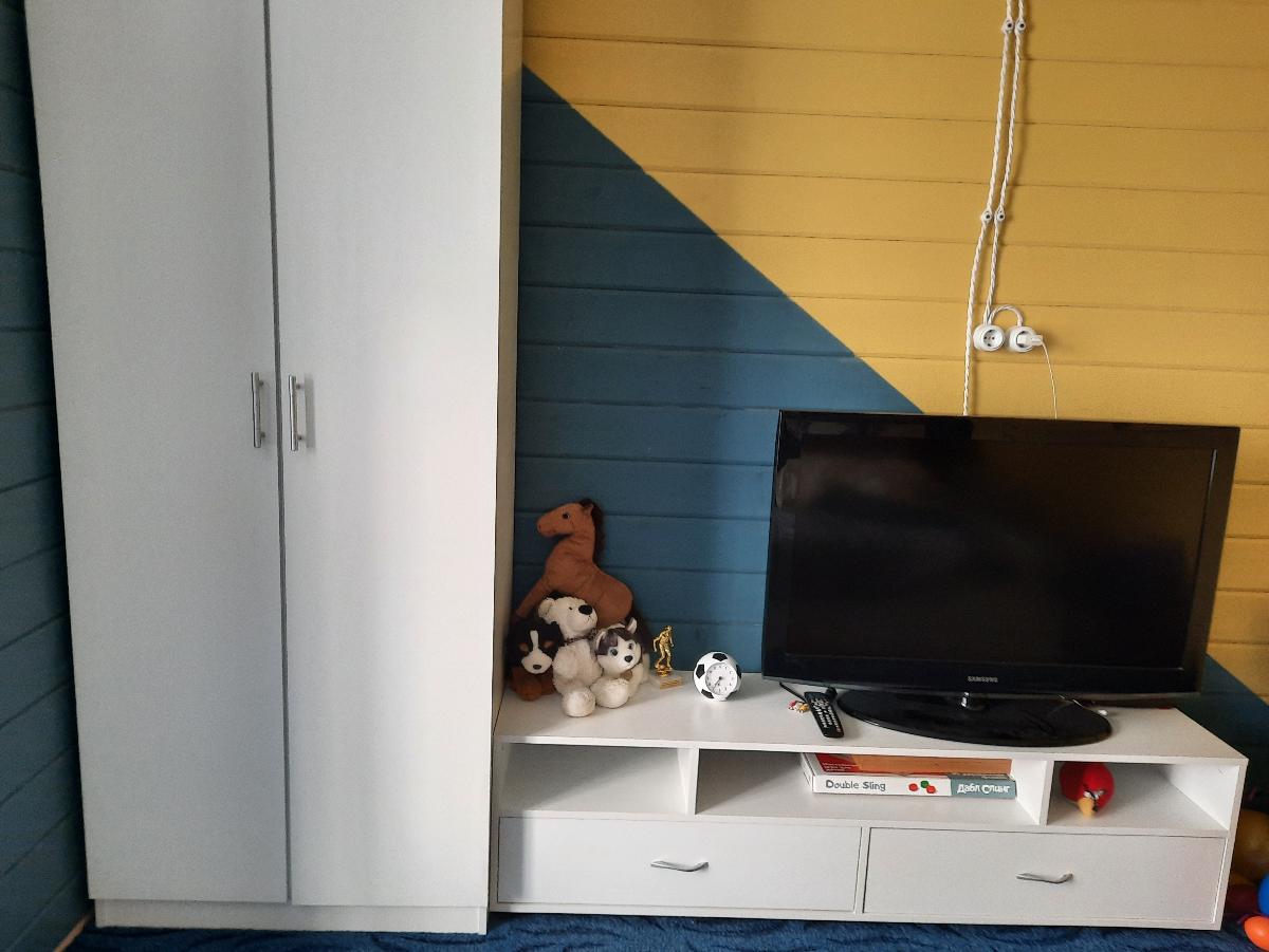 И тумбу и шкаф приобретали на данном сайте. Одобно, что можно выбрать и цвет, и размер. Единственное докупала "клепочки" пластмасовые, чтобы прекрыть мебельные шурупы, т.к. в комплекте идут обычные круглые наклейки, а они, на мой взгляд, портят вид мебели.
