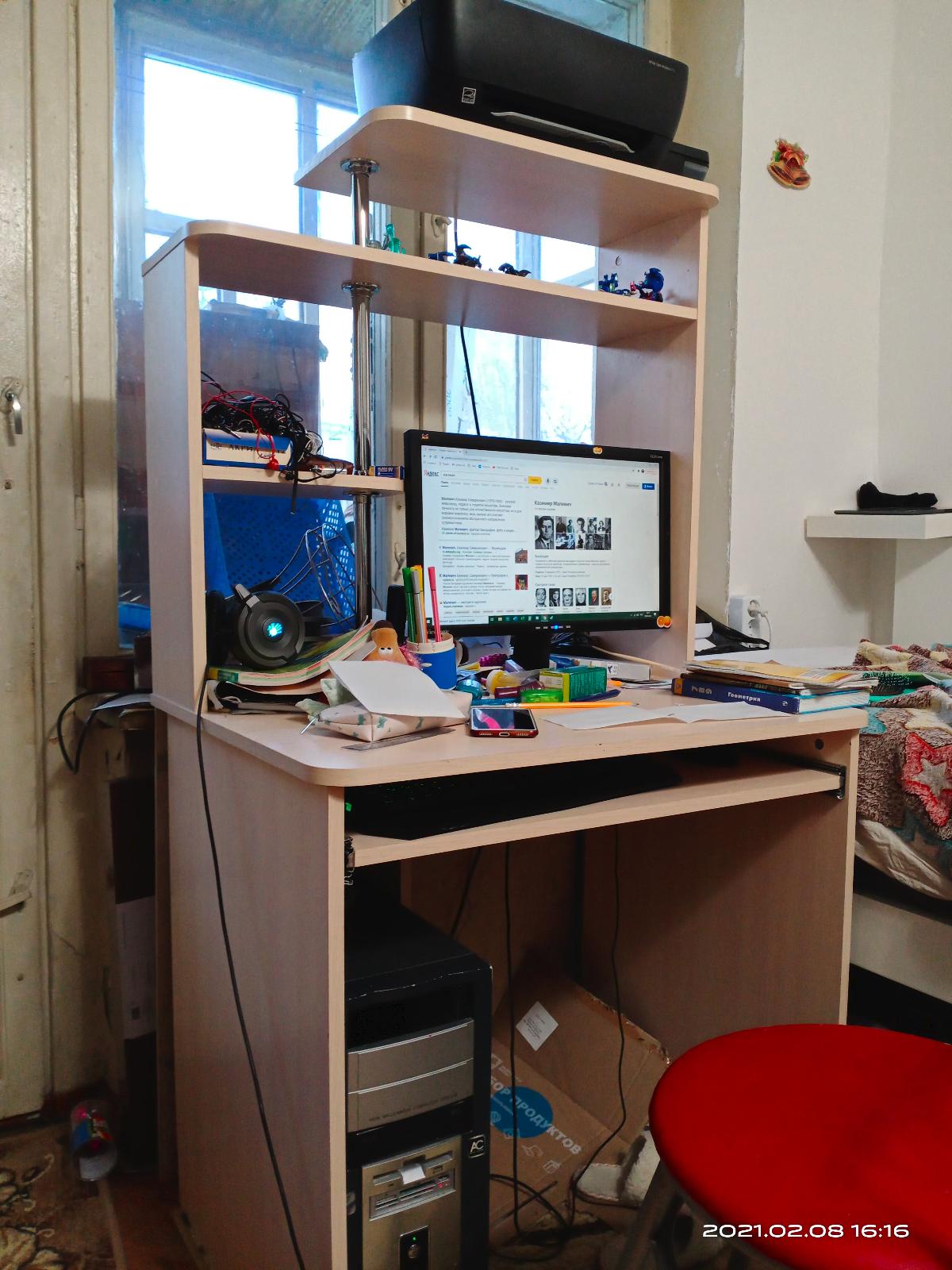 Заказ 00000472344, замечательный стол!!! Сын счастлив! Отлично вписался компьютер и есть место для учебников и тетрадей! Купили на распродаже, я даже переживала, может он какой-то бракованный, но все отлично!