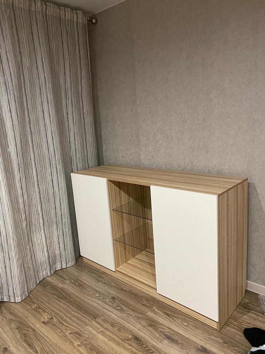 Заказ 00000987826Возникла необходимость замены старого комода с выдвижными ящиками, выбор был сделан в пользу тумбы с дверцами. Очень удобно, что можно выбрать не только цвет и материал, но и указать свои размеры. После оформления заказа на сайте сразу же последовал звонок от оператора, были оговорены кое-какие нюансы заказа и дата доставки, нам нужна была именно суббота. Упаковка и доставка на отлично, никаких нареканий. Сборку производили самостоятельно, в инструкции не указана последовательность действий, что несколько осложнило процесс. Качеством изделия вполне удовлетворены. Спасибо!