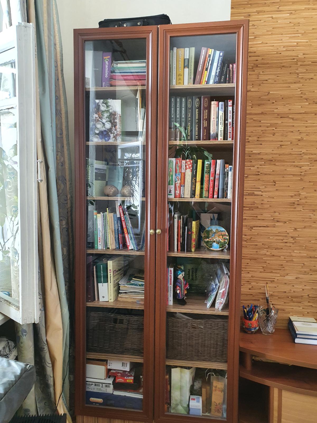 Зимой заказали книжный шкаф, номер заказа: 00000330912, шкаф отлично вписался в интерьер, цвет подошел по гамме к обоям и мебели. Смотрится стильно. Шкаф очень удобный, книги встают в 2 ряда, удобно, что можно выбрать размер. Я выбрала 2,2×0,4×0,9, самое то. Шкаф можно прикрепить к стене, но я не стала, в этих размерах он вполне устойчив. Производитель рекомендует наклейки снимать при помощи фена. Совет хороший, они легко отходят, но может остаться клей и даже цвет с нее. Поэтому если будете заказывать что-то белое, рекомендую использовать после него растительное масло и затем яблочный уксус или любое чистящее средство. Порадовала сборка - приехали через час после звонка, быстро и четко все собрали. Спасибо!
